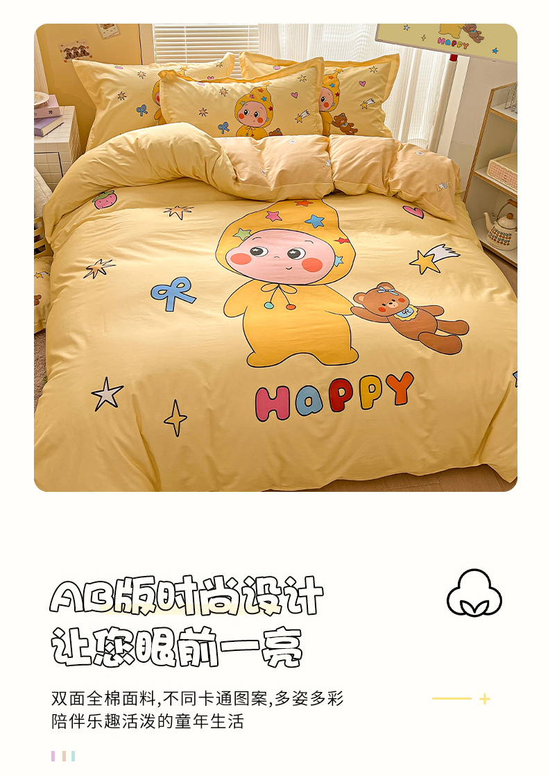 当前位置: 91家纺网 > 商品网购 > 床品套件 > 四件套 > 全棉普通四件套 > 浩诚 2026新款星星人全棉纯棉卡通四件套(汇总) 小熊星