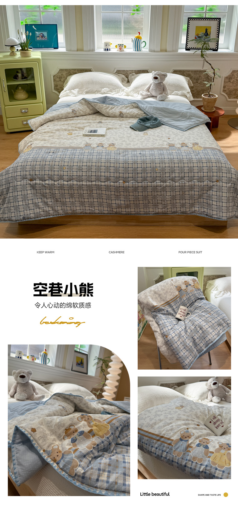(总)赛琳 2026新款豆豆春秋被被子被芯,蛋糕小猫,爱心小熊,丛林小兔,绿爱心,顽皮小新,小黄鸭