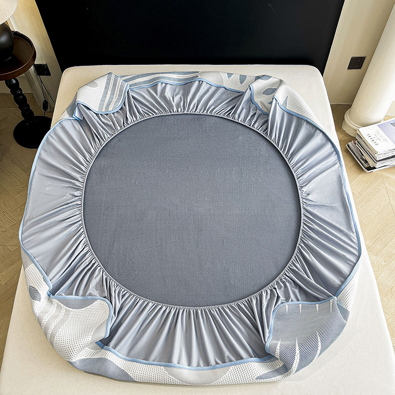(总)雅诗帛 2026新款PE凉感丝床裙款凉席三件套-织序,织序床裙-粉,织序床裙-灰,织序床裙-蓝,织序床裙-绿