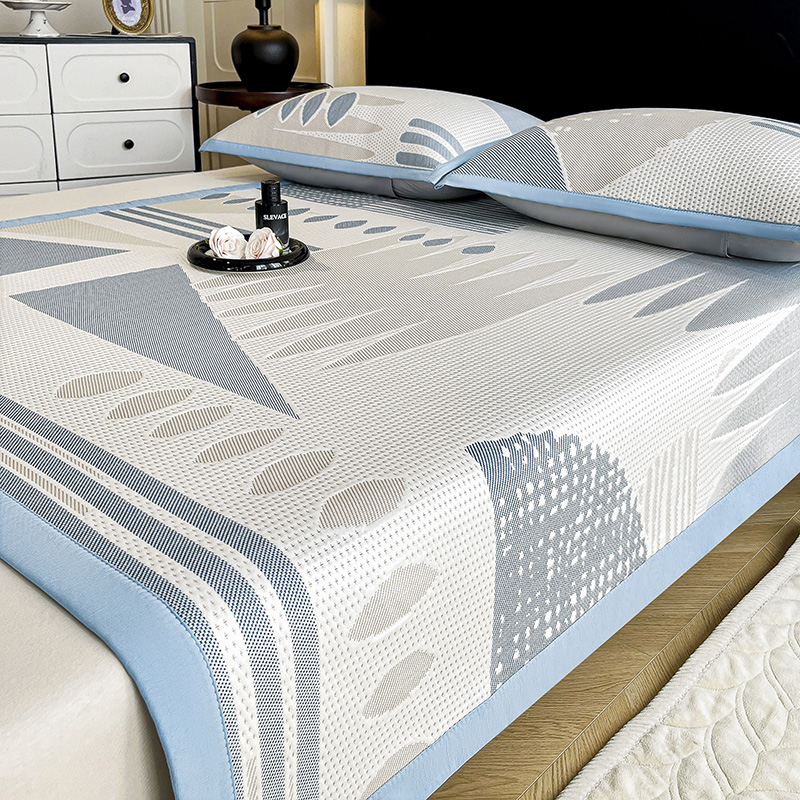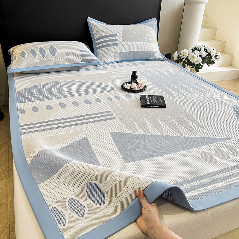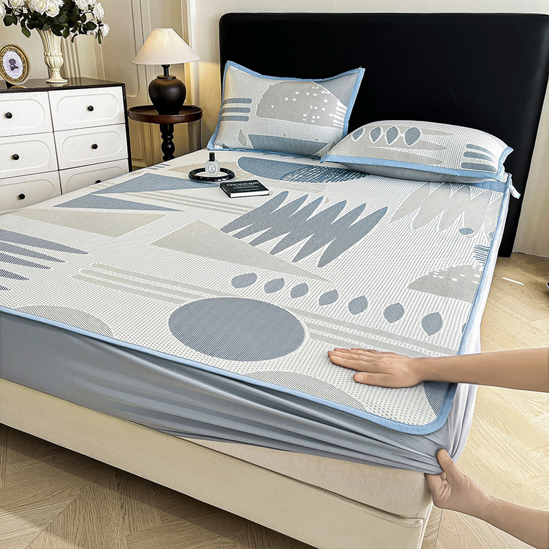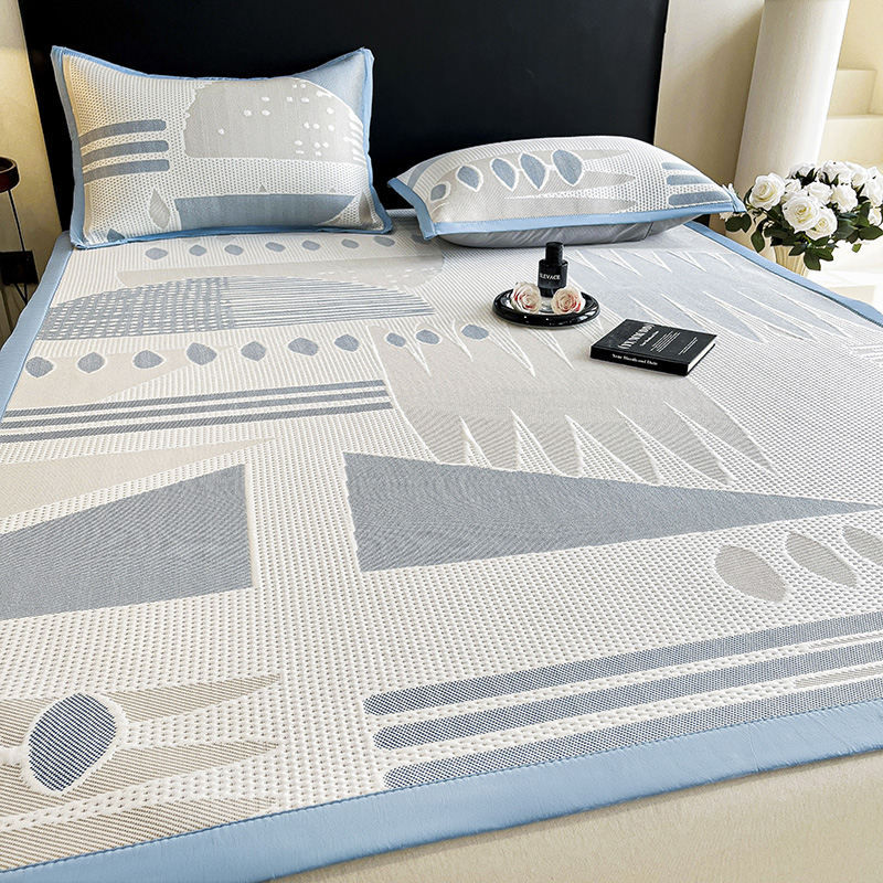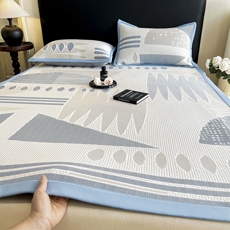 商品名称:雅诗帛 2026新款PE凉感丝凉席床笠款凉席席子三件套-几何 几何-蓝