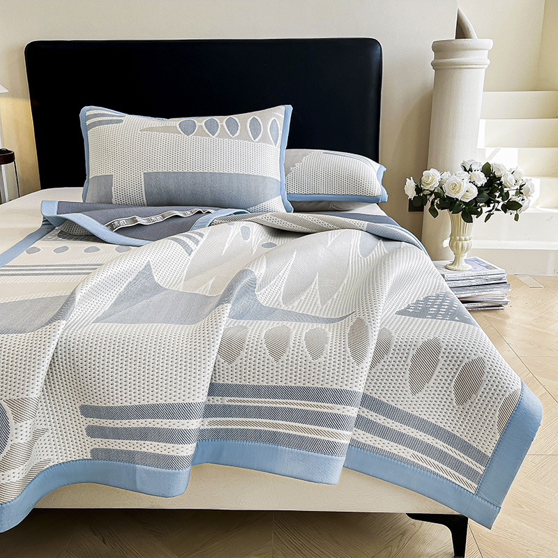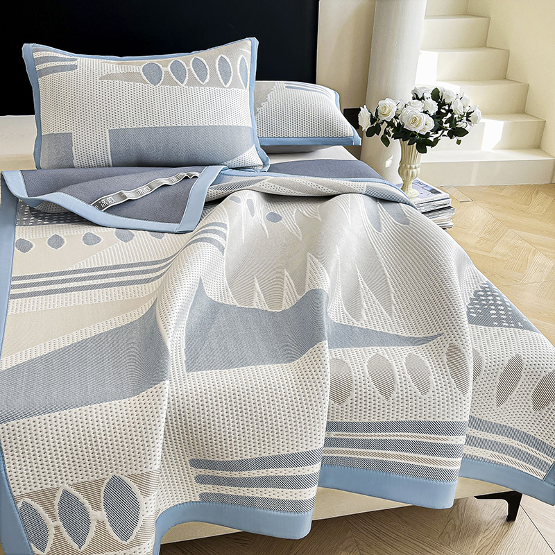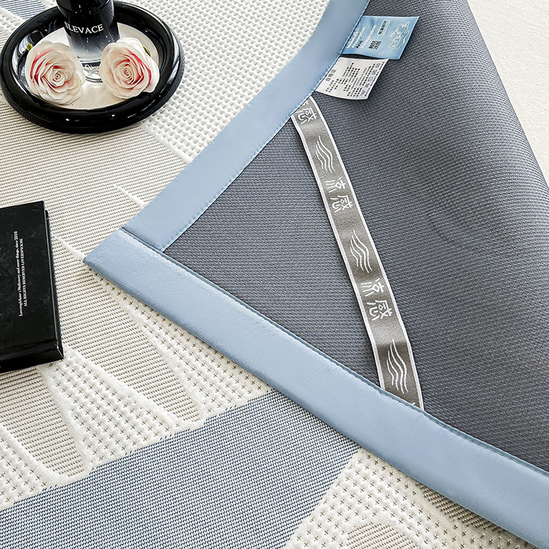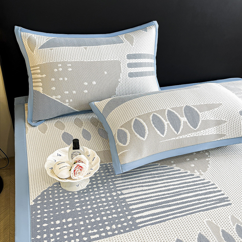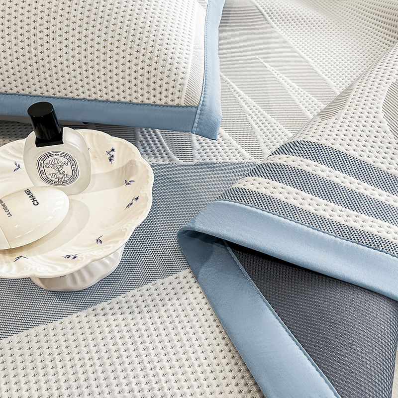 商品名称:雅诗帛 2026新款PE凉感丝凉席床笠款凉席席子三件套-几何 几何-蓝