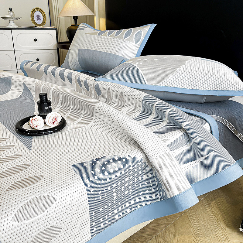 (总)雅诗帛 2026新款PE凉感冰丝席三件套-织序,床席织序-粉,床席织序-灰,床席织序-蓝,床席织序-绿