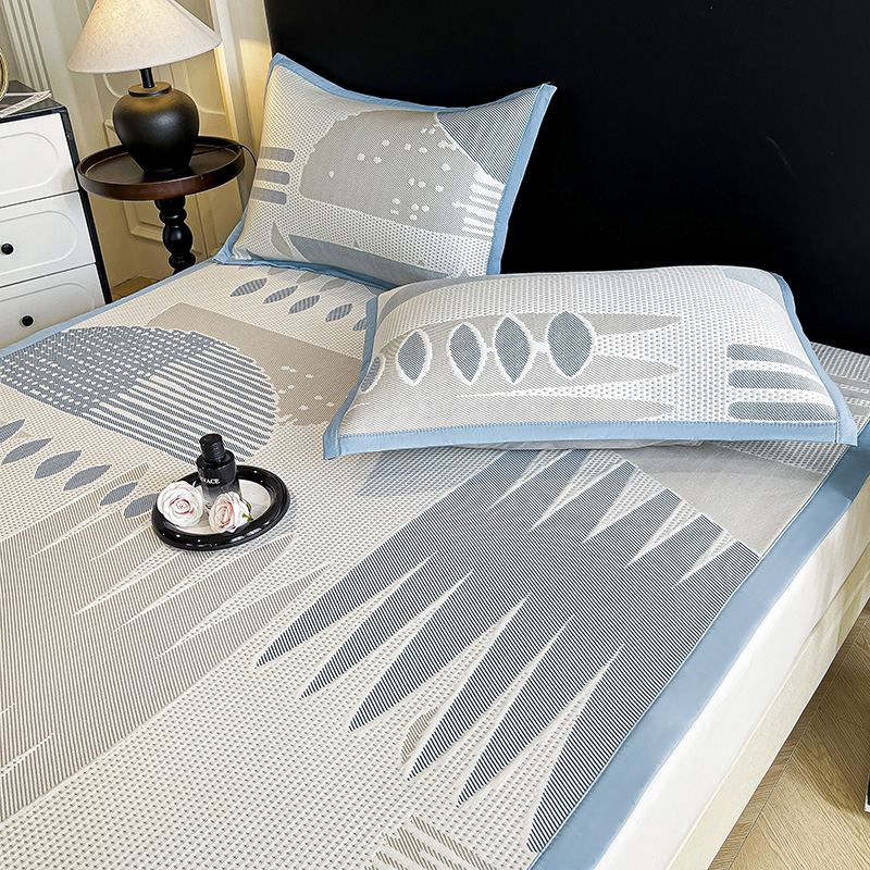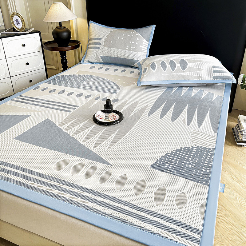 (总)雅诗帛 2026新款PE凉感丝凉席三件套-几何,几何-粉,几何-灰,几何-蓝,几何-绿