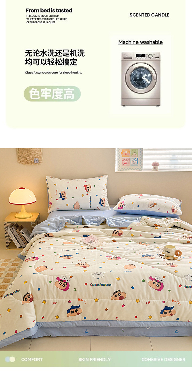 • 91家纺网 家纺一手货源 找家纺 沐辰 2026春夏新款A类三丽鸥蜡笔小新全棉棉花夏被夏凉被空调被 组合图仅供展示不可下单