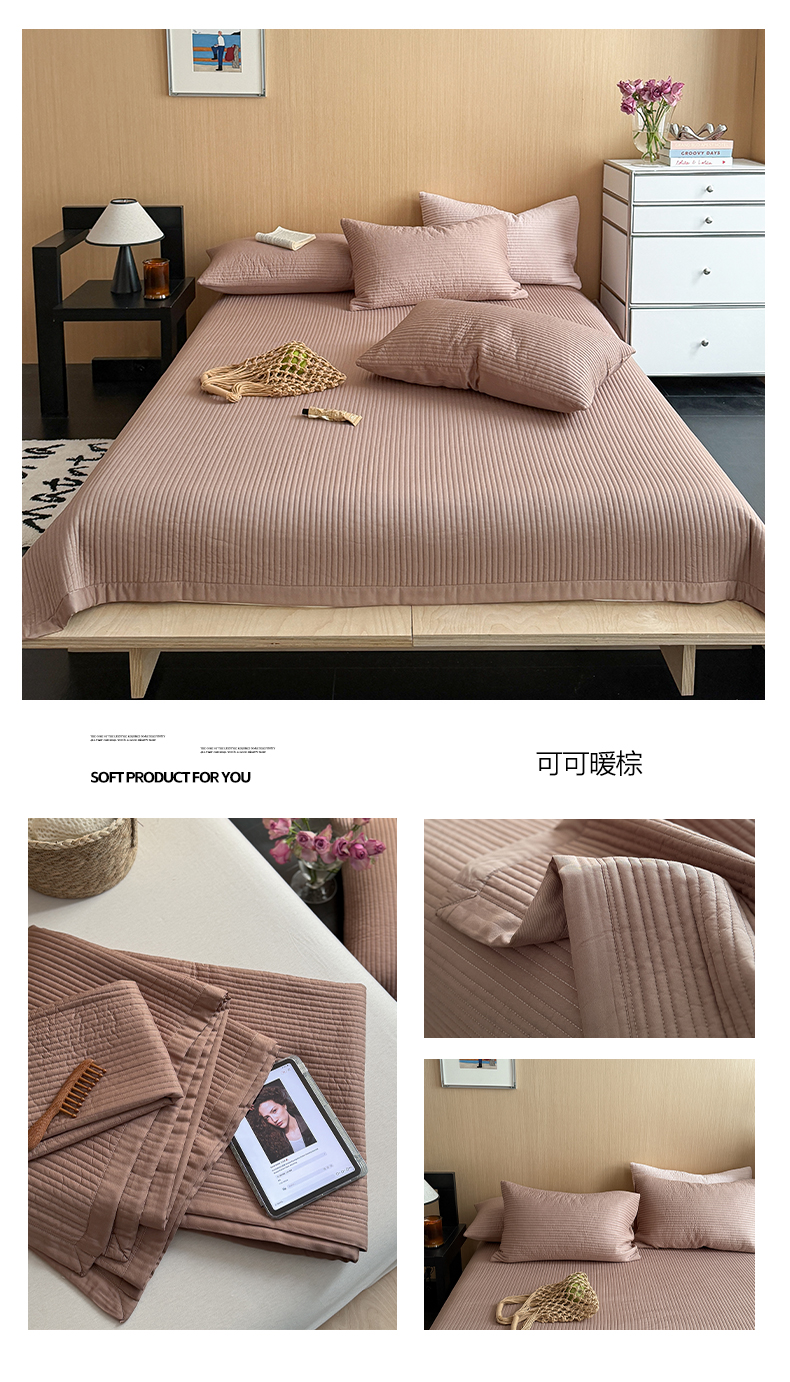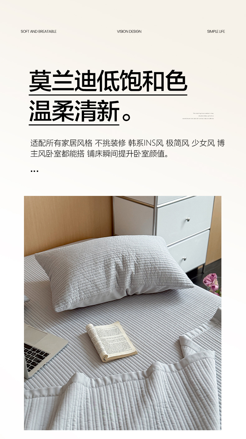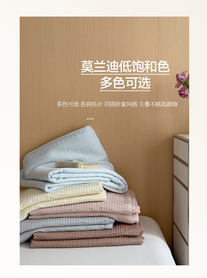 (总)漫调家纺 2026新款韩国莫代尔夏被床盖系列-宽边直条款,海盐蓝,可可暖棕,奶杏,柔粉,雾灰