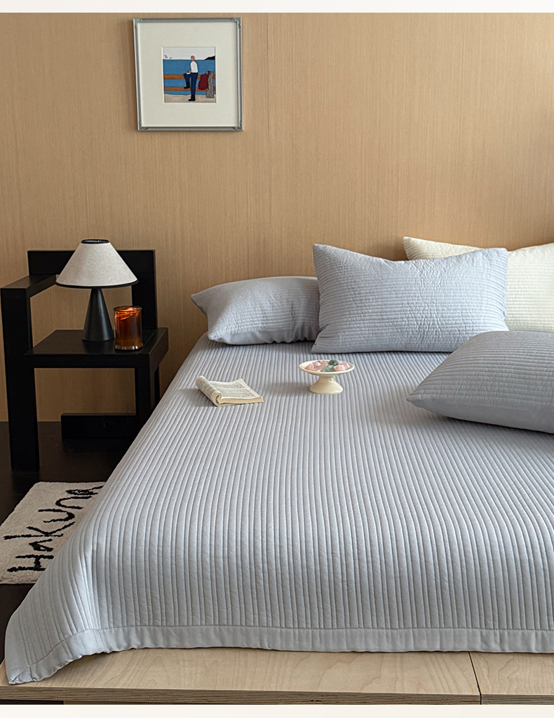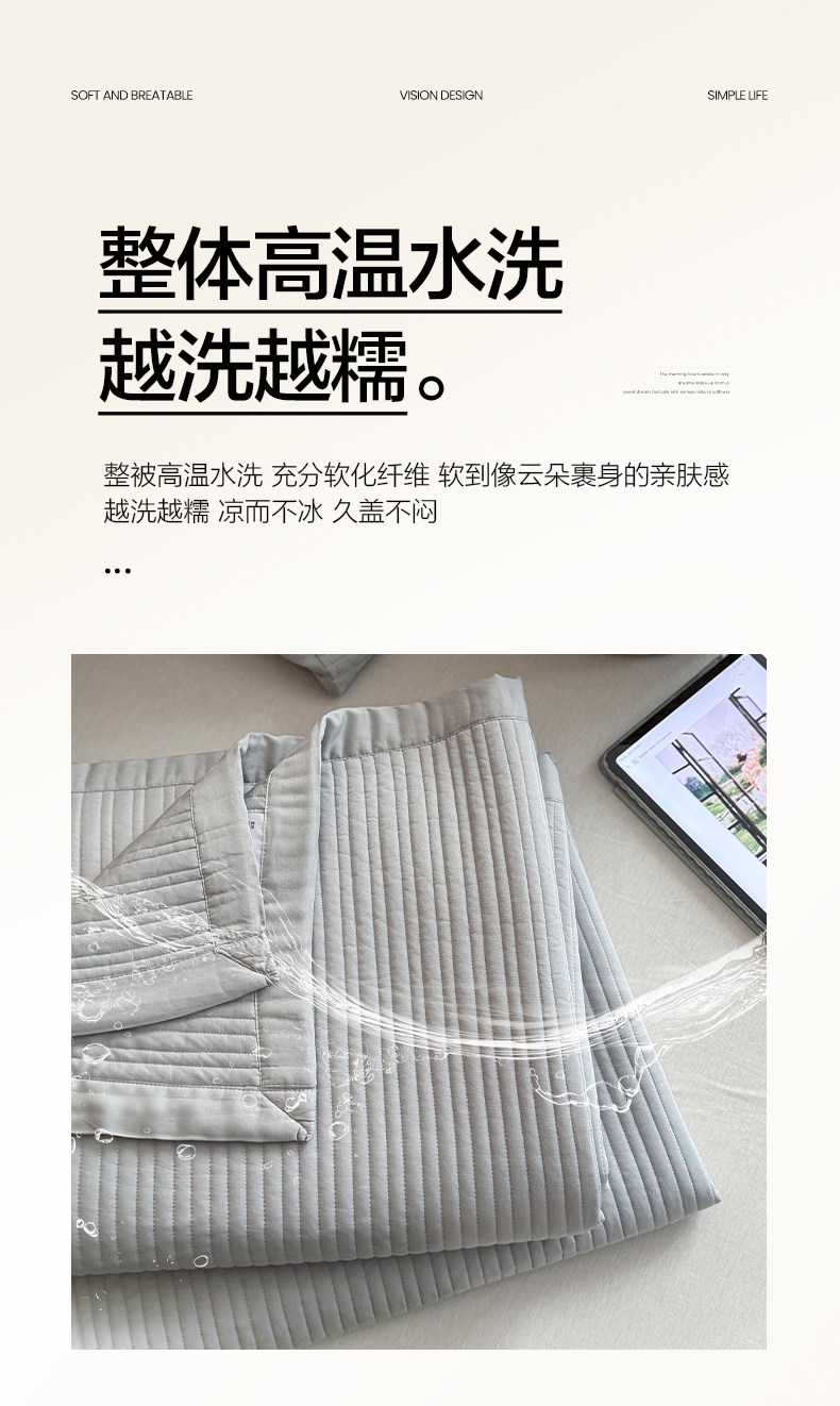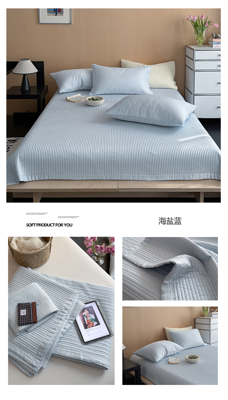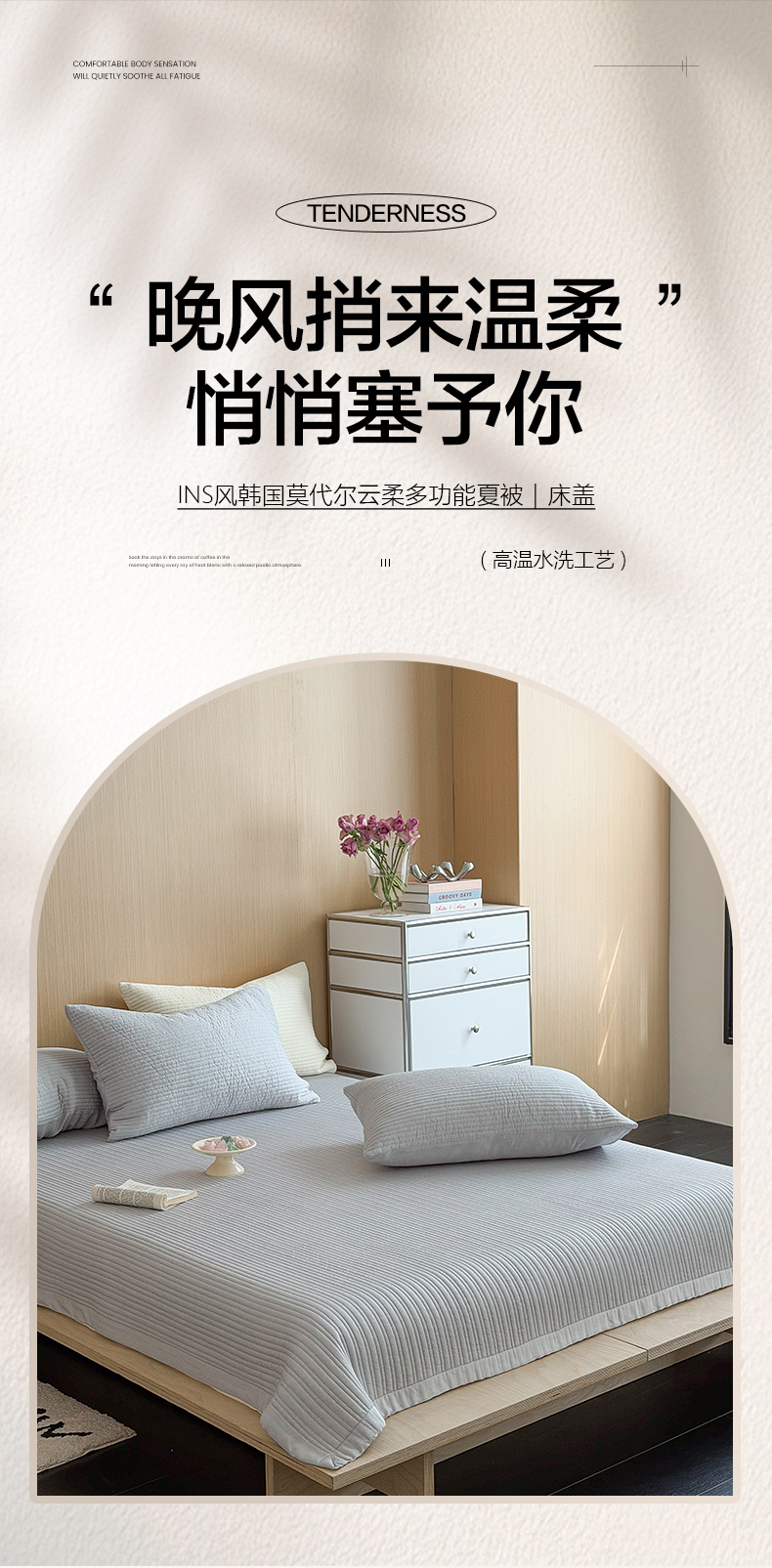 (总)漫调家纺 2026新款韩国莫代尔夏被床盖系列-宽边直条款,海盐蓝,可可暖棕,奶杏,柔粉,雾灰