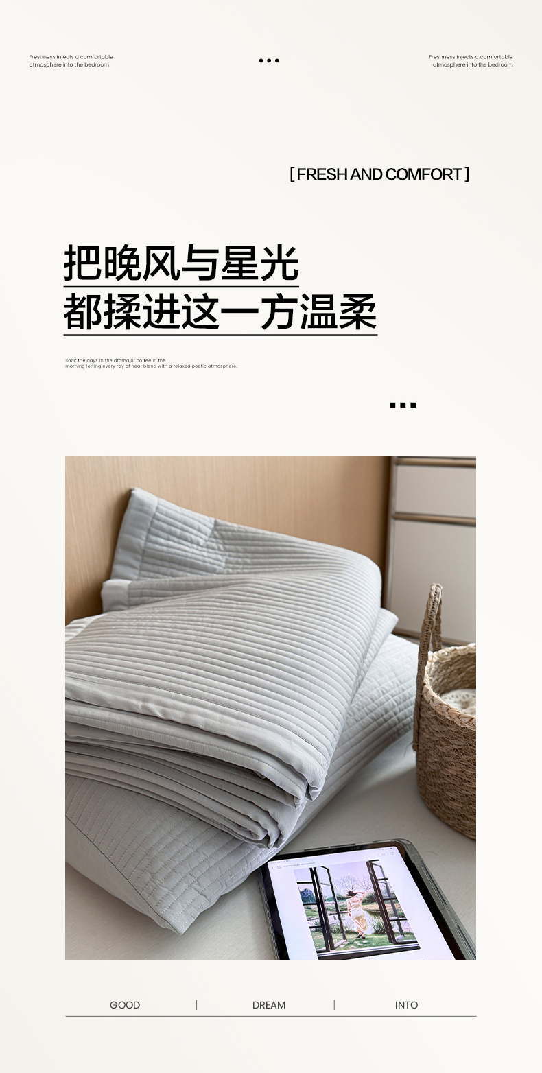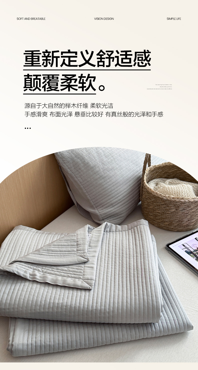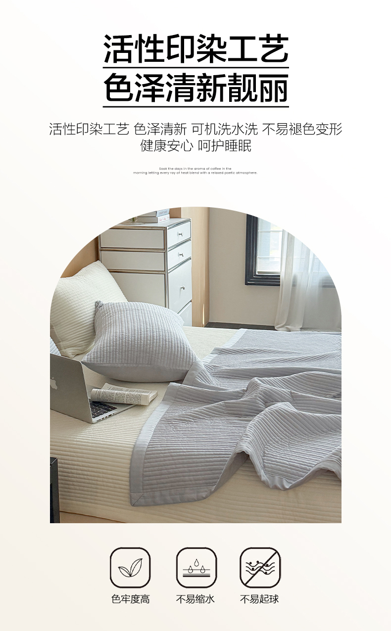 商品名称:漫调家纺 2026新款韩国莫代尔夏被床盖系列-宽边直条款 雾灰