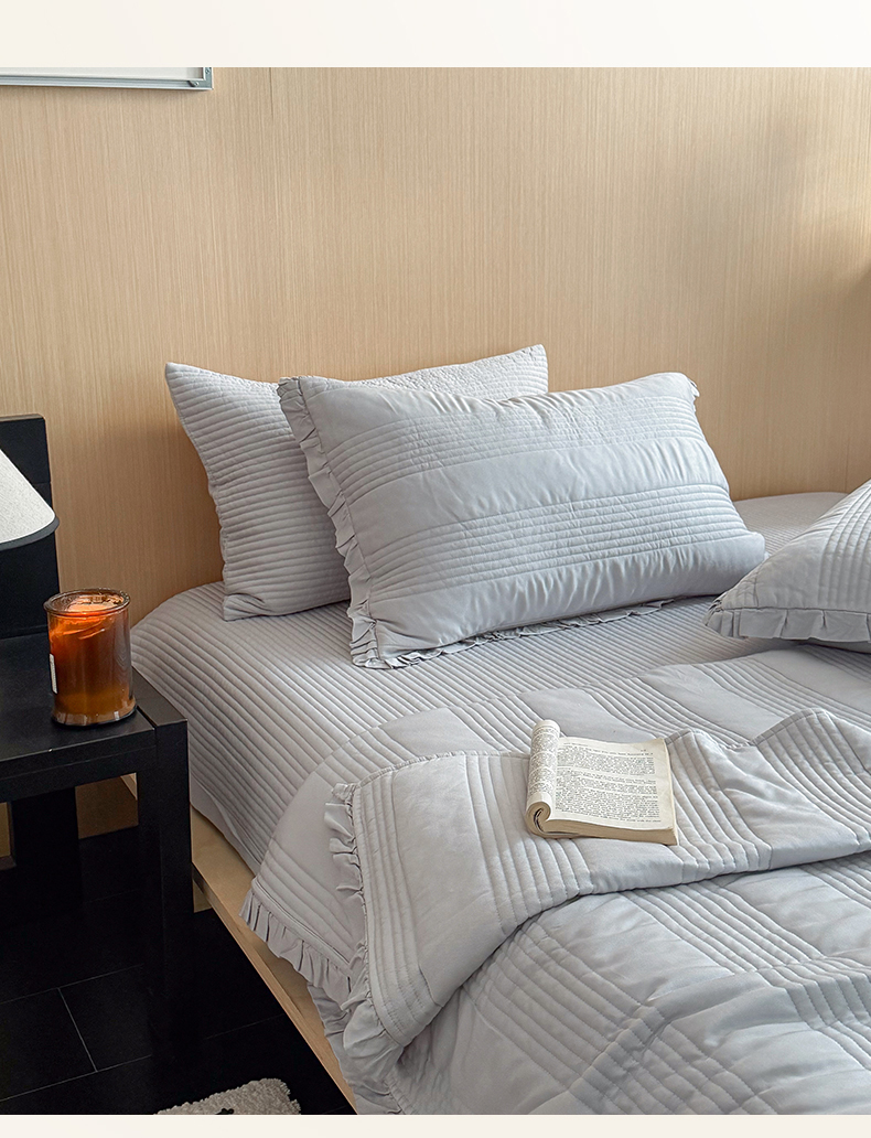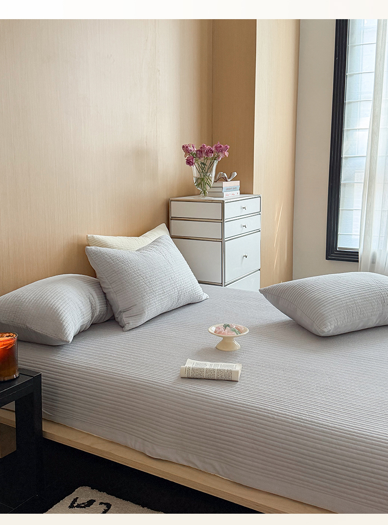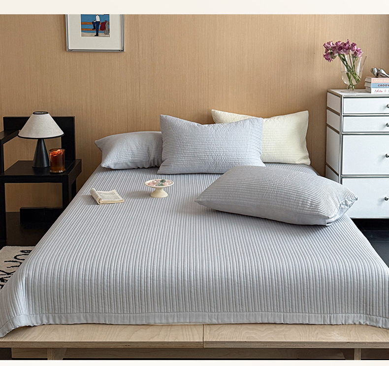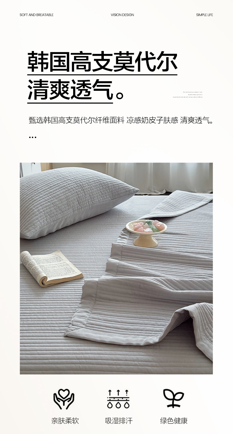 漫调家纺 2026新款韩国莫代尔夏被床盖系列-宽边直条款 雾灰
