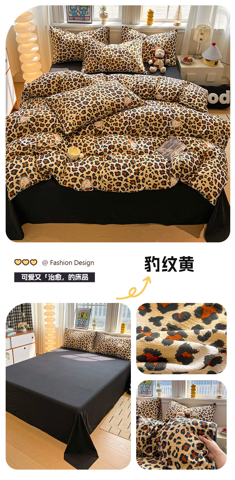 (总)花伞家居 2026新款皱皱纱毛巾绣豹纹喵四件套含买家秀,小香猫-黄豹纹,小香猫-卡其豹纹,星星猫-灰豹纹,星星猫-热情豹纹