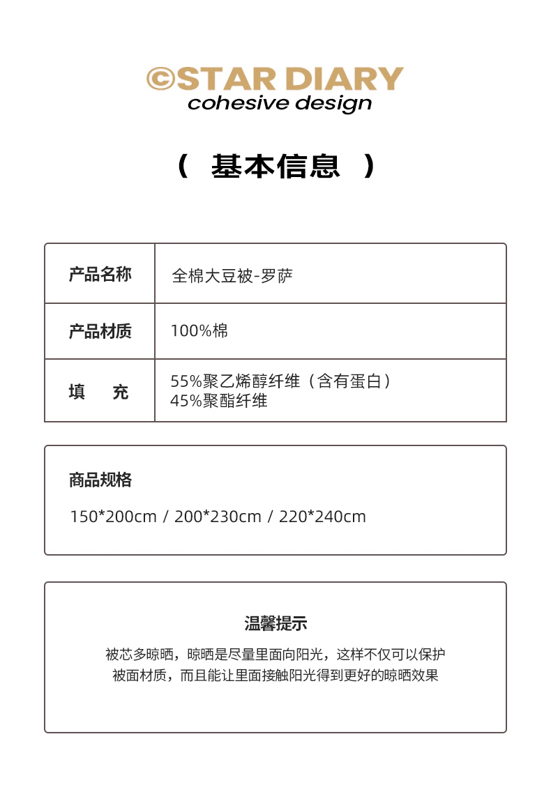 商品名称:(总)纪梵茜 2026新款李官奇全棉大提花55%大豆被夏被空调被芯-罗萨