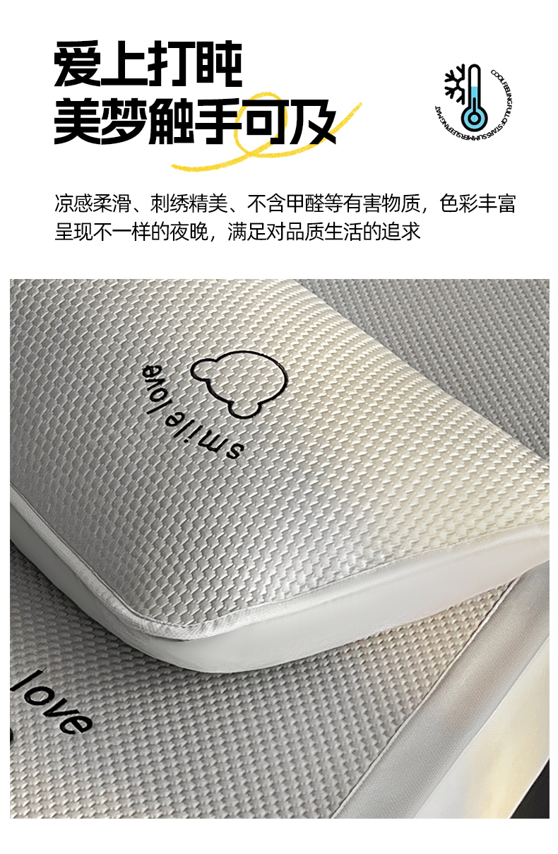 商品名称:2026新款夏季A类绣花PE冰豆豆冰丝凉席枕套凉感家用单人学生宿舍48×74cm一只一对-八宝熊枕套 八宝熊-灰