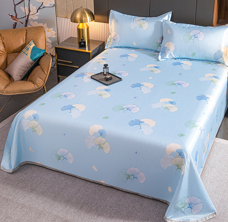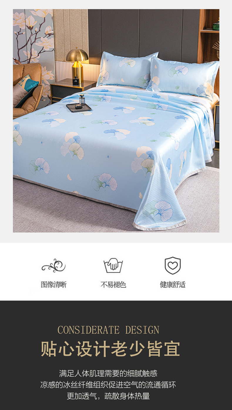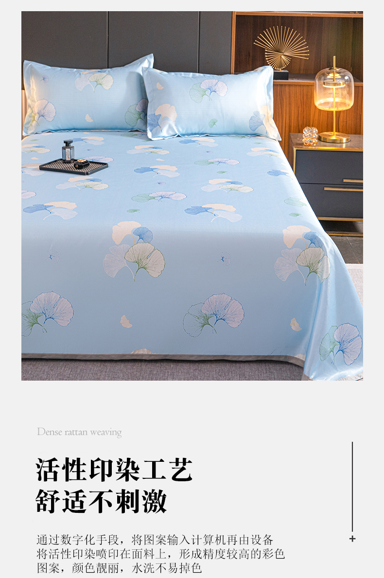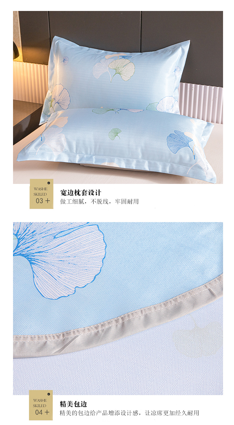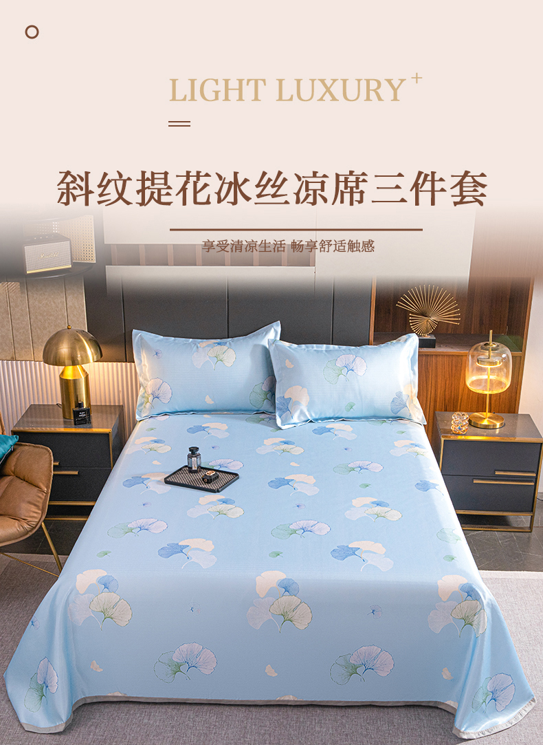 星窝家纺 2026新款直播电商优选可机洗斜纹提花冰丝凉席三件套 银杏叶蓝