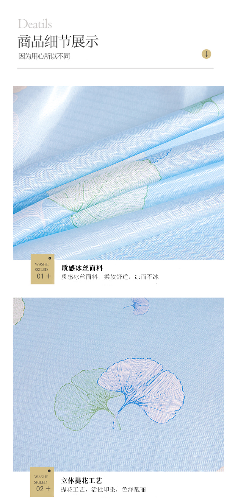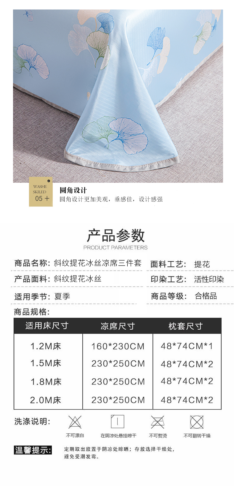 商品名称:星窝家纺 2026新款直播电商优选可机洗斜纹提花冰丝凉席三件套 银杏叶蓝