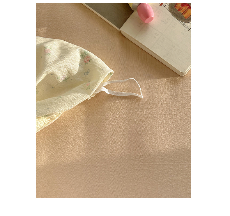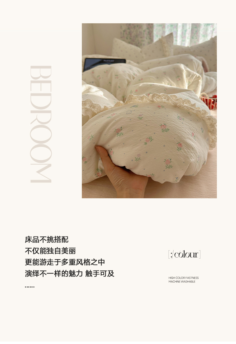 商品名称:山茶家居-原创设计(原山茶家纺) 2026新款皱皱纱水洗棉花边四件套-清雾系列 清雾-小粉花