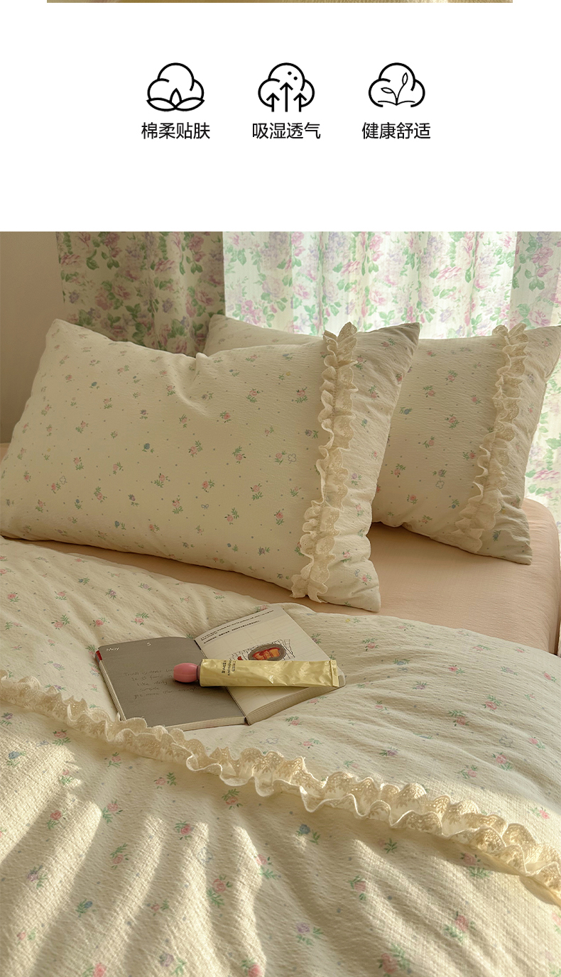 (总)山茶家居-原创设计(原山茶家纺) 2026新款皱皱纱水洗棉花边四件套-清雾系列,清雾-蕾丝粉,清雾-蕾丝蓝,清雾-蕾丝米,清雾-小粉花,清雾-小黄花