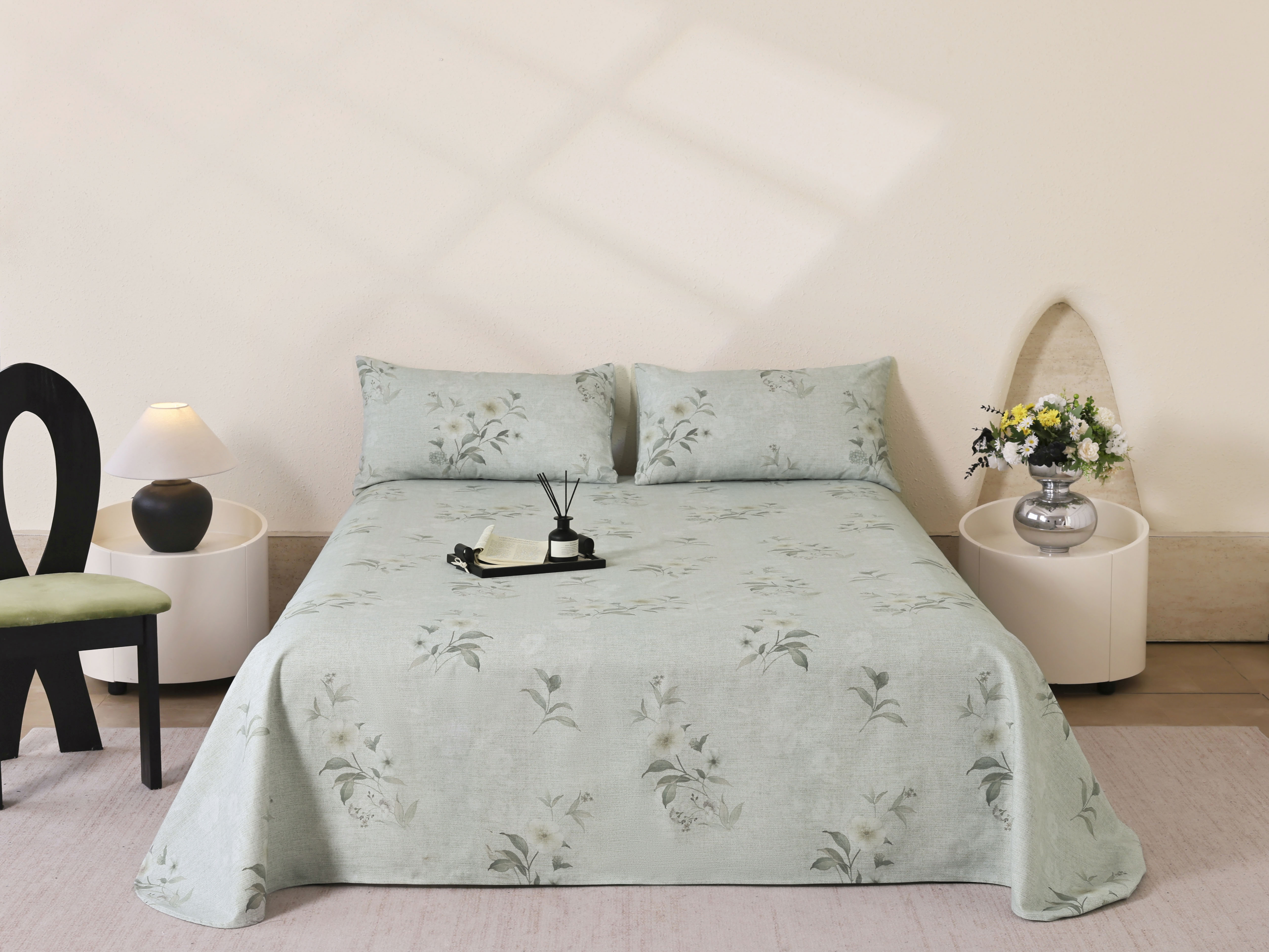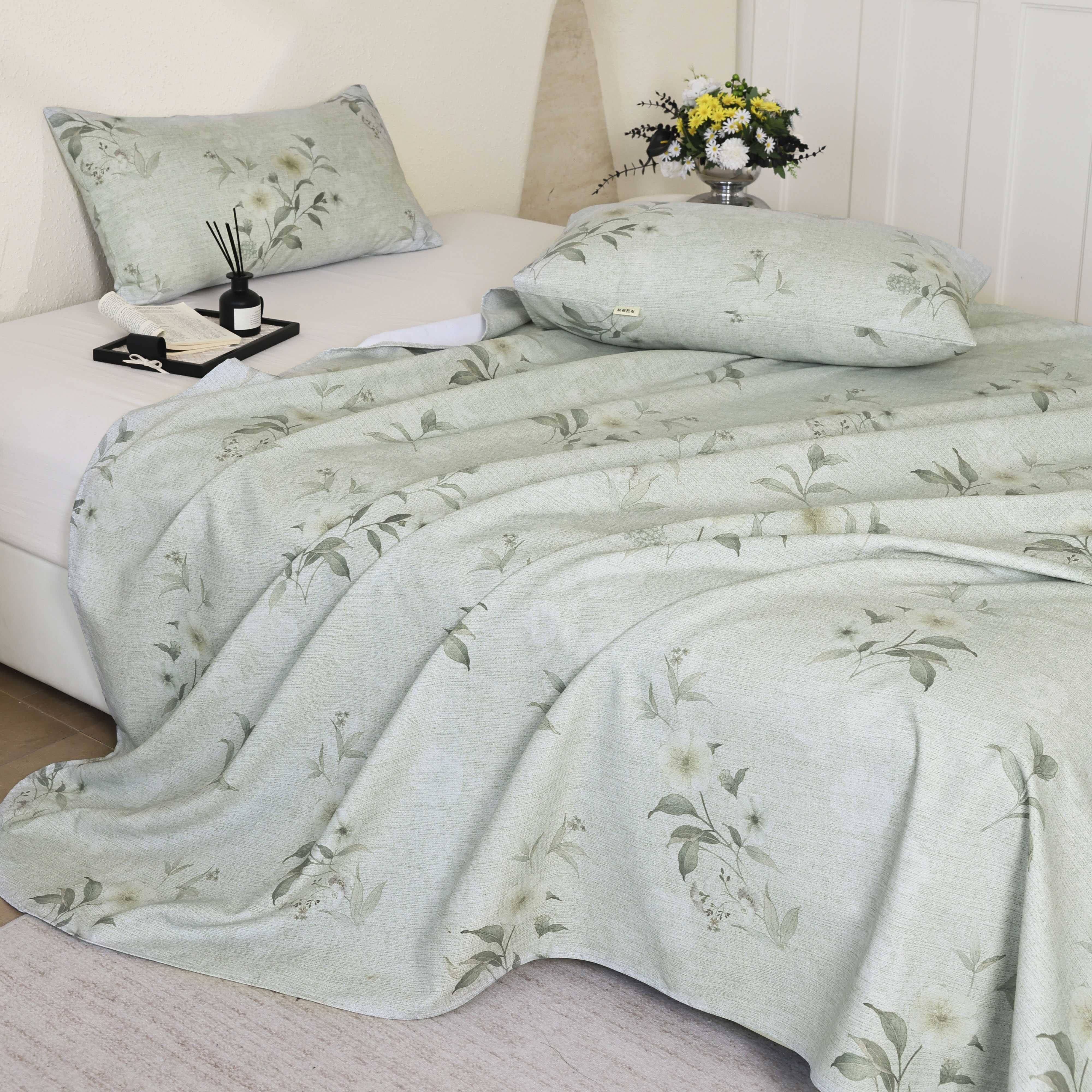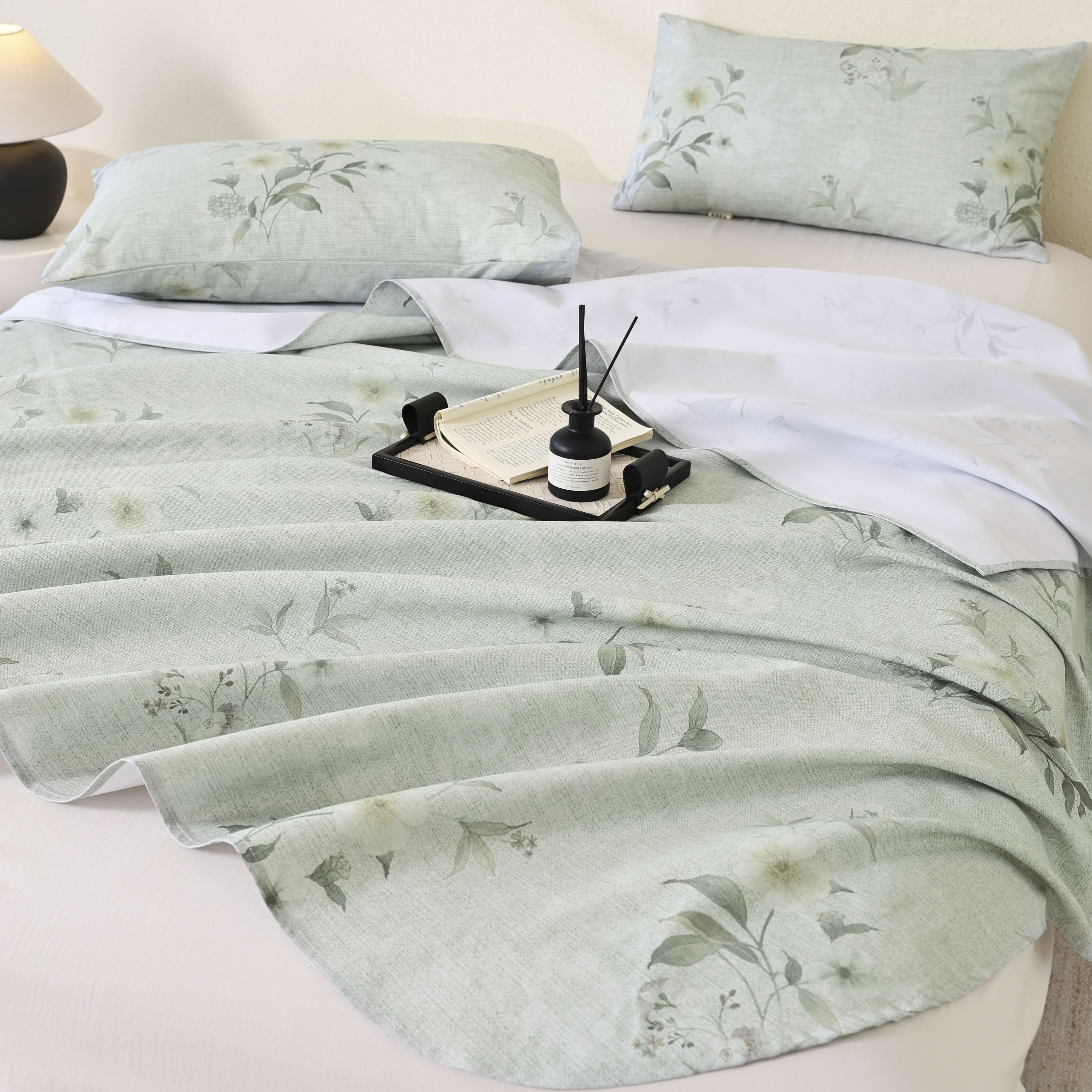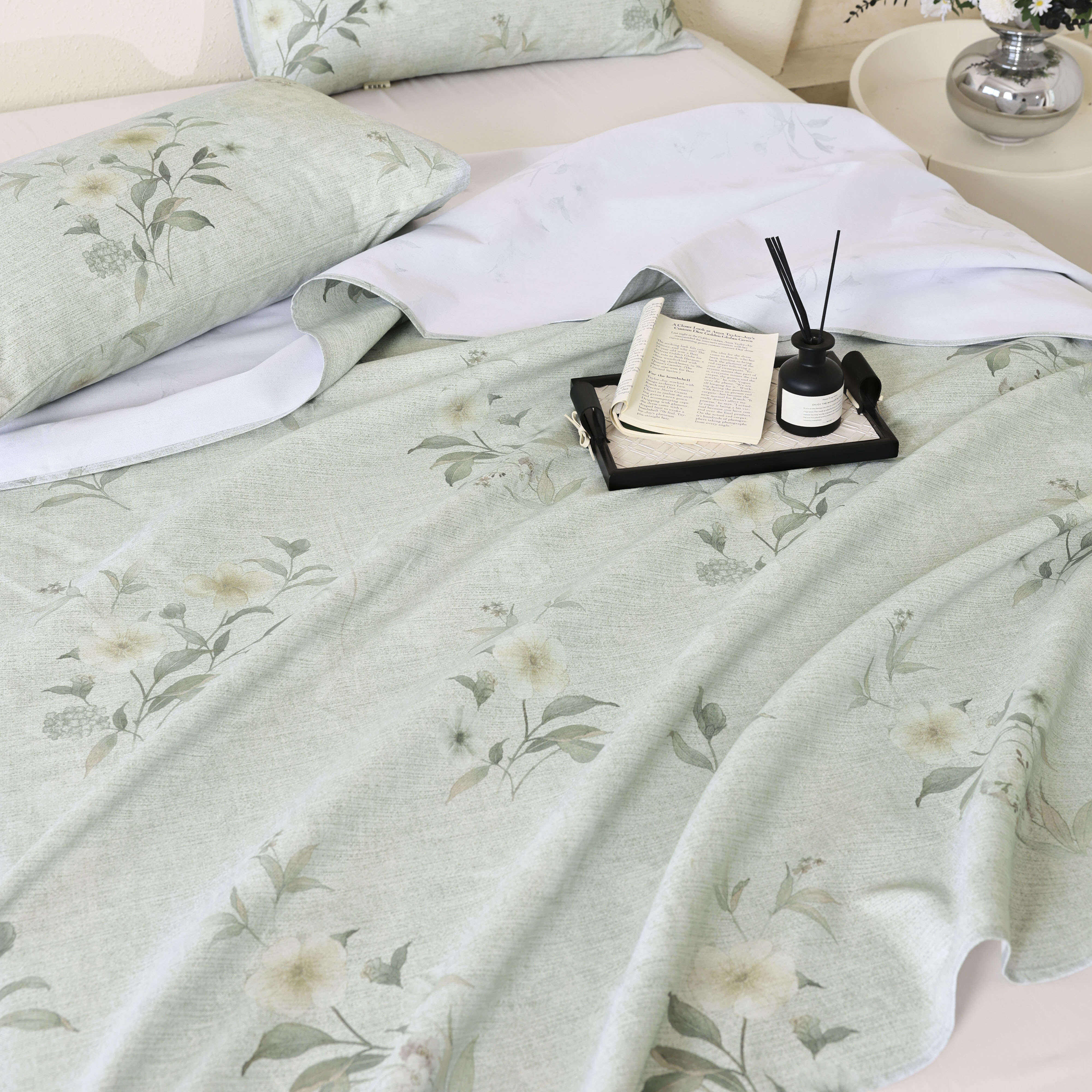 遇安家纺 2026年新款原棉老粗布凉席三件套 白茶-绿
