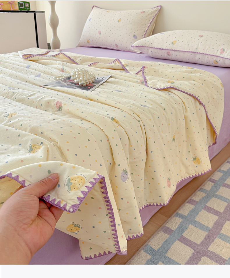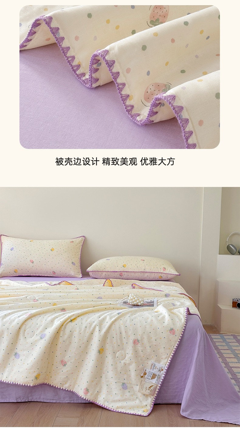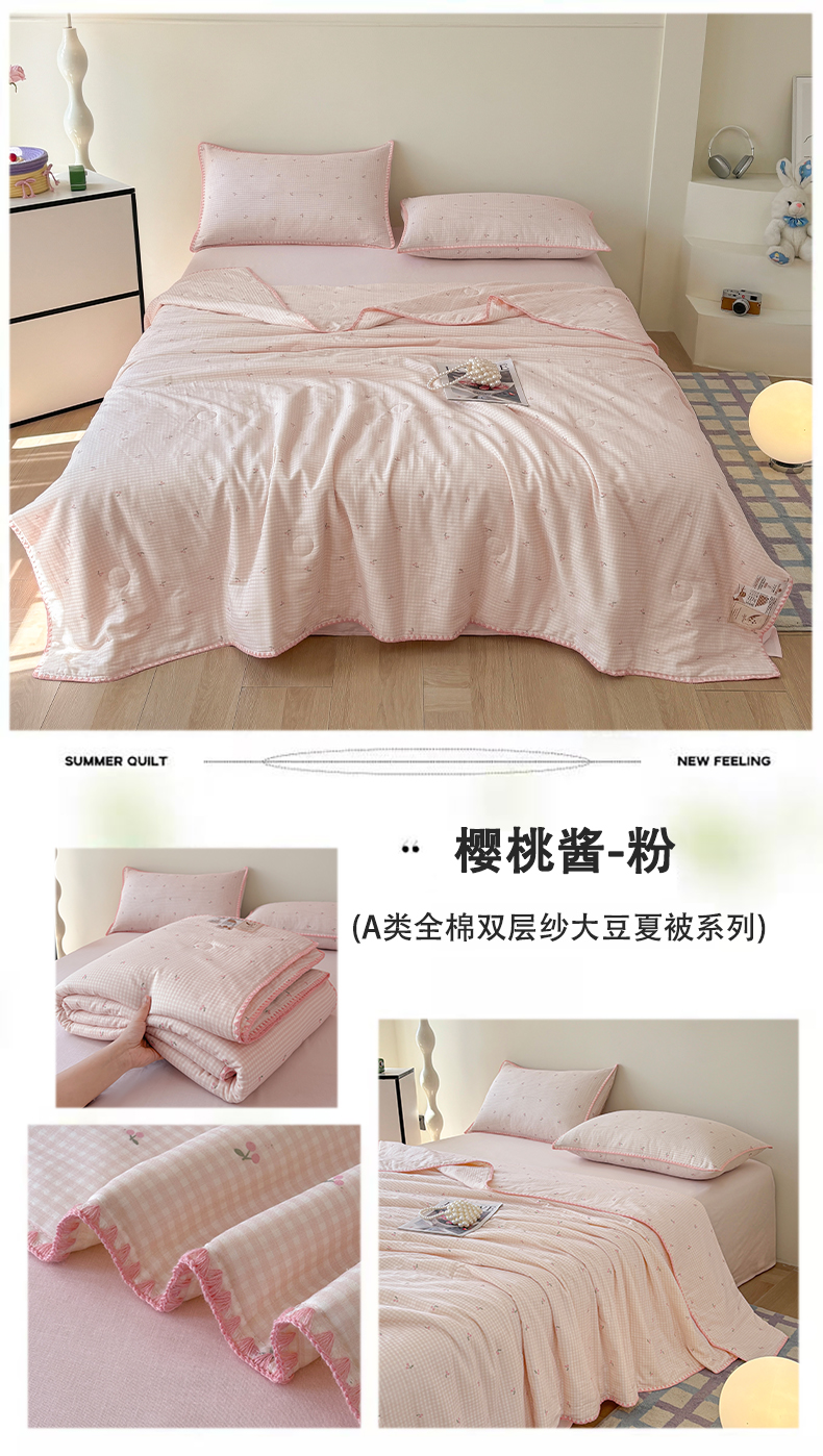 (总)爱她美家纺 2026新款A类全棉有氧双层纱大豆夏被夏凉被空调被四件套,草莓点点,春意,格调-兰,腊肠犬-咖,琉夏-绿,太空熊猫-米,旺旺南瓜,弦上春-紫,樱桃酱-粉,尤克里里-兰