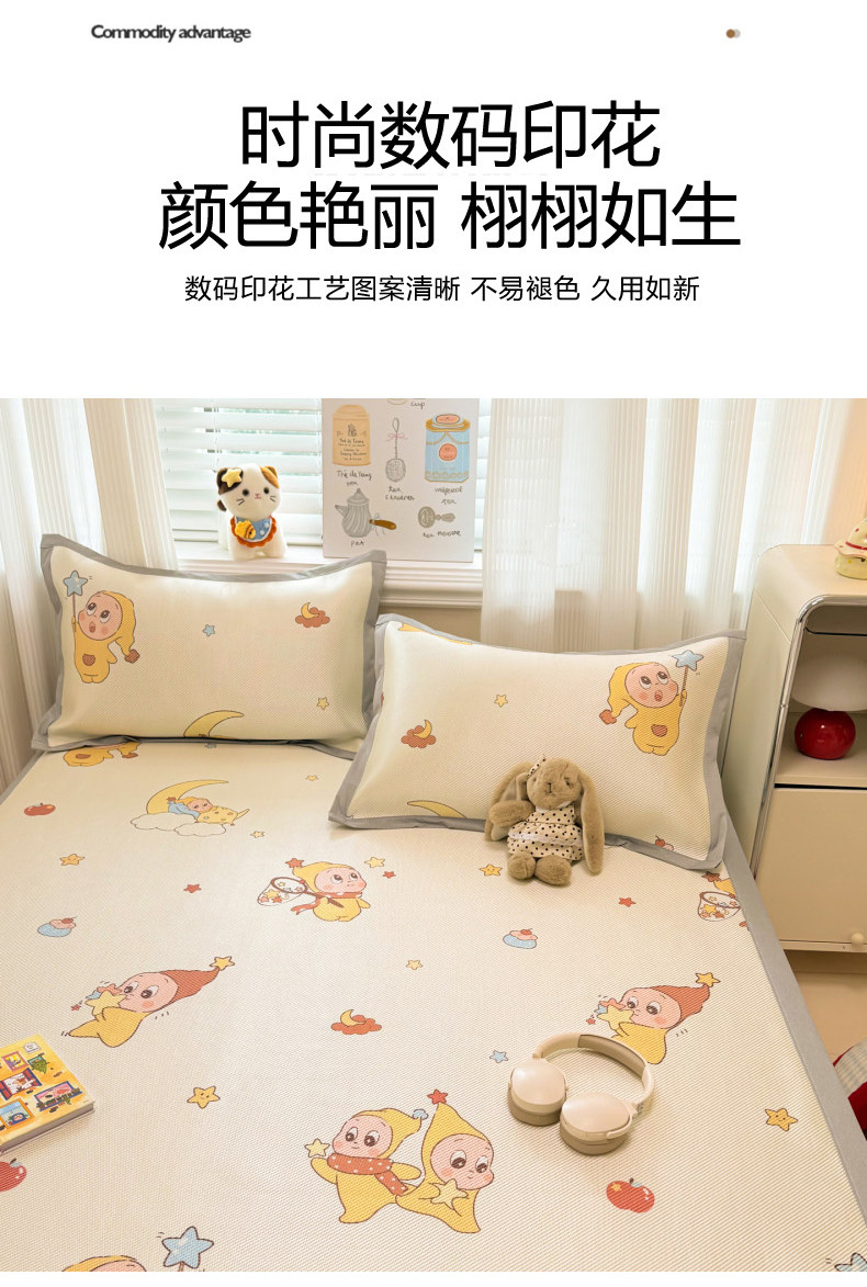 商品名称:慕尚家纺 2026新款清新凉感冰藤席床笠款 星星宝宝