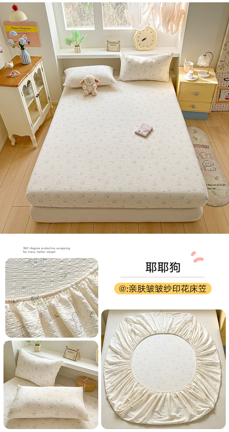 蓝极人 2026新款泡泡纱印花床笠 CL苹果狗
