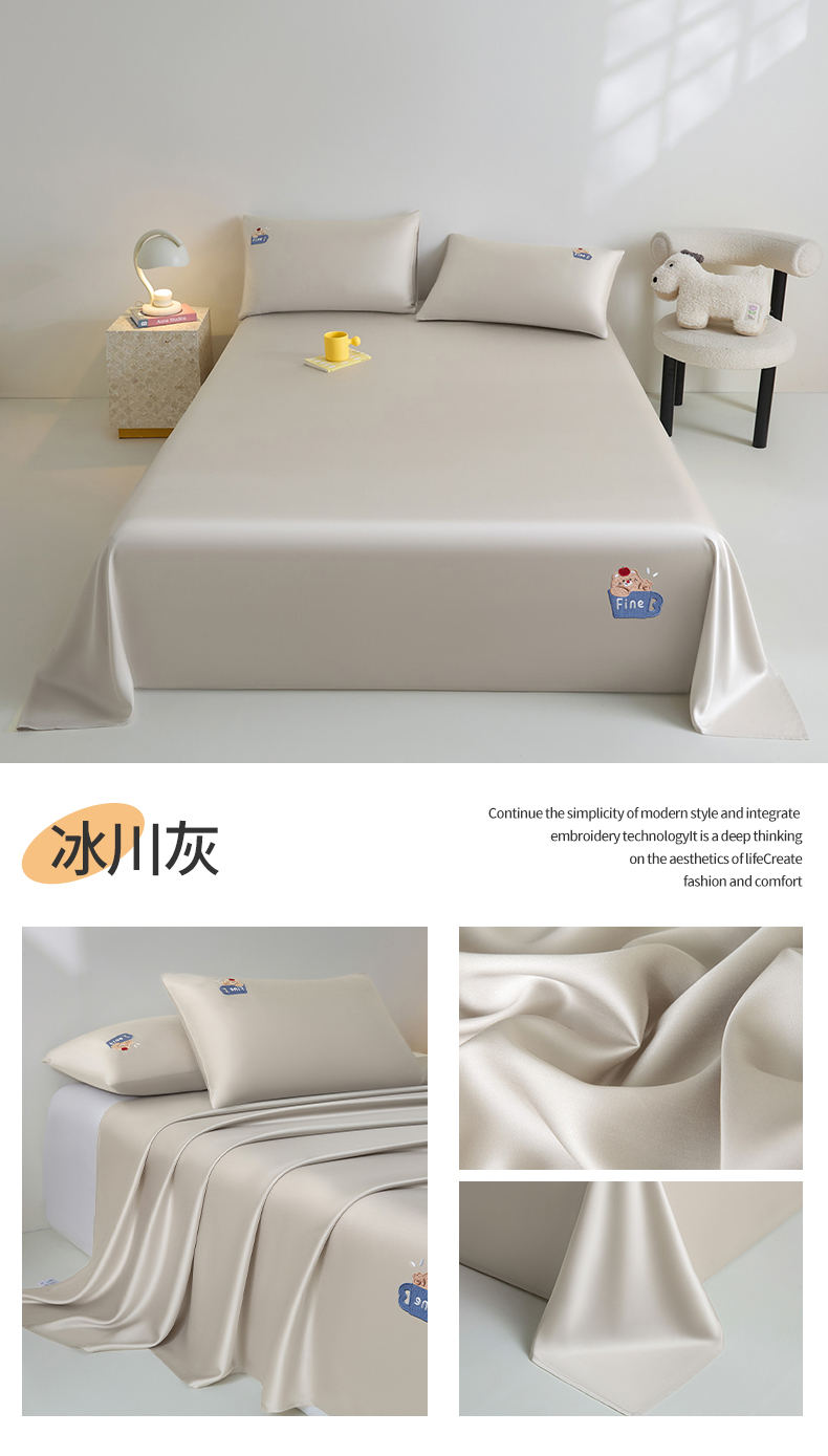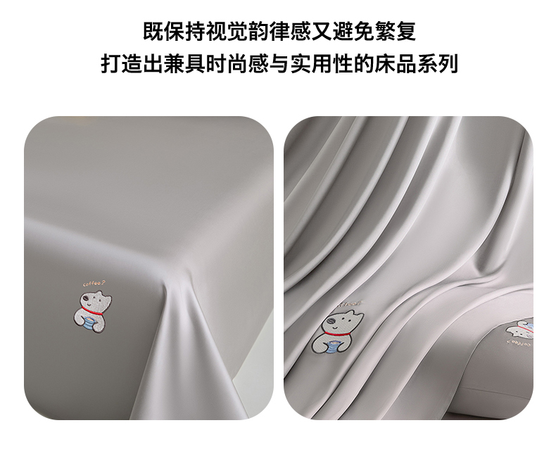商品名称:DC 2026新款莱赛尔天丝卡通刺绣单品床单 经典灰