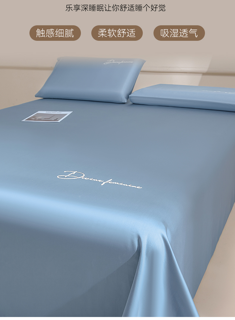 DC 2026新款莱赛尔天丝轻奢刺绣单品床单 梵高蓝