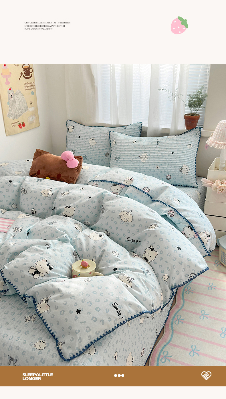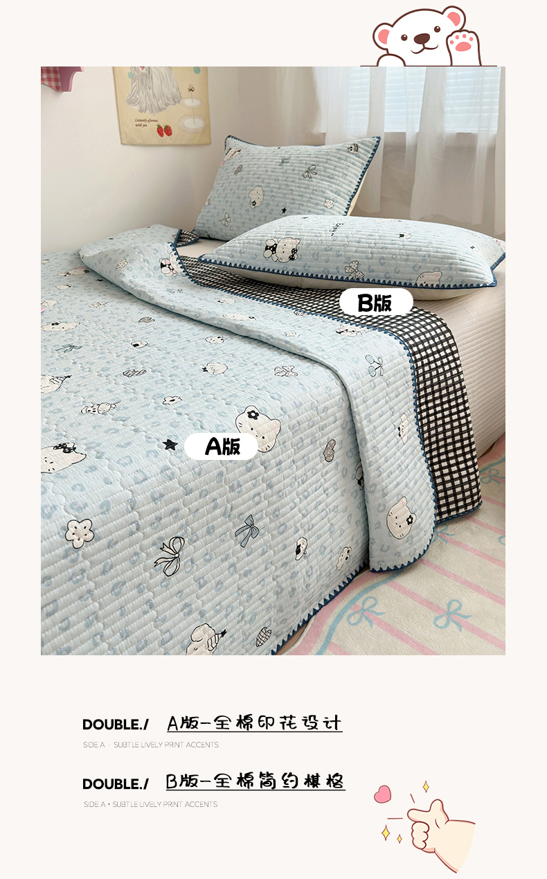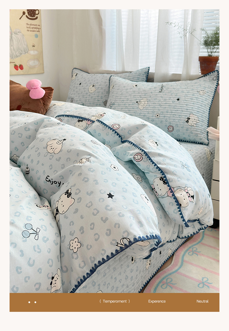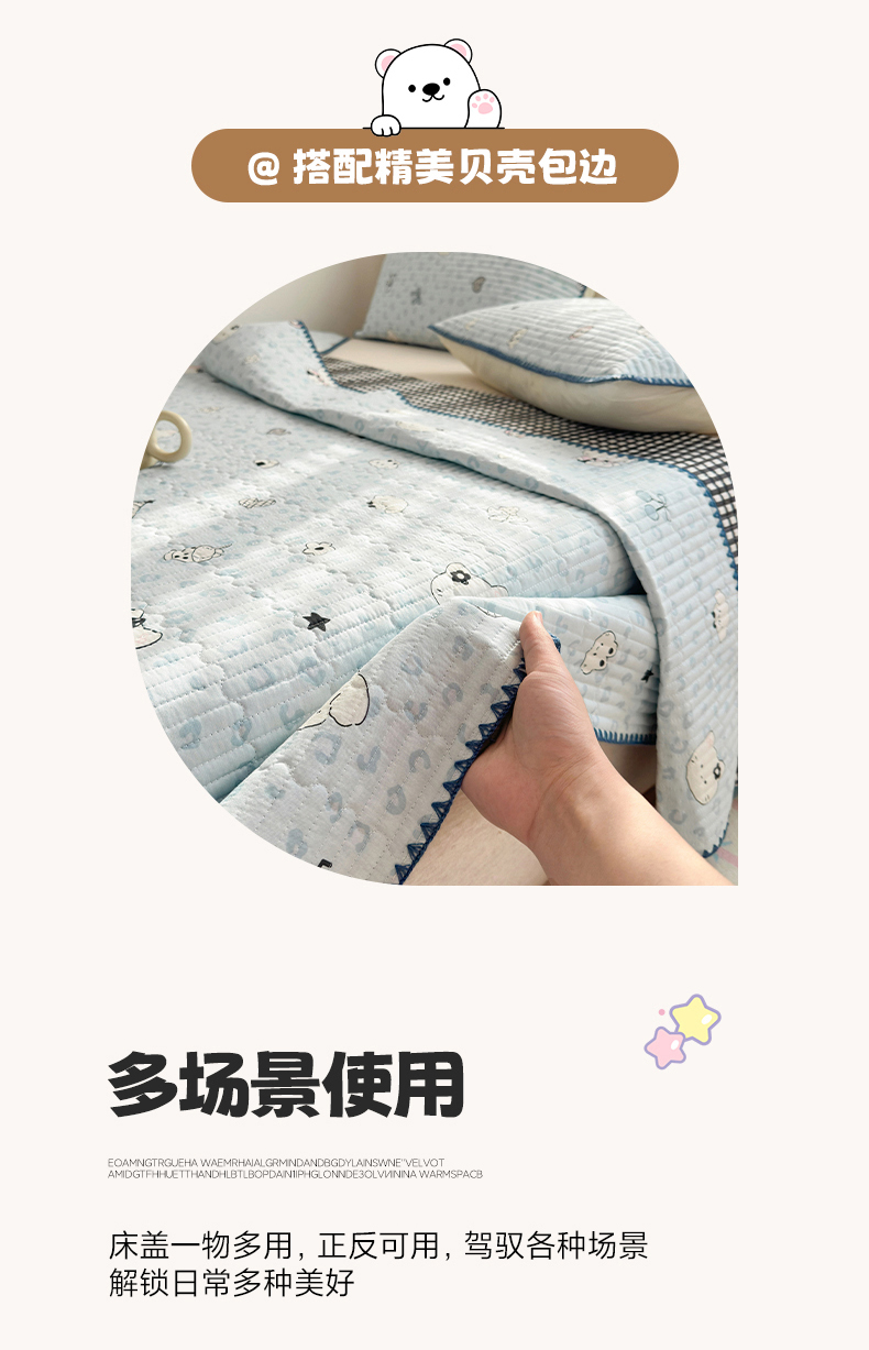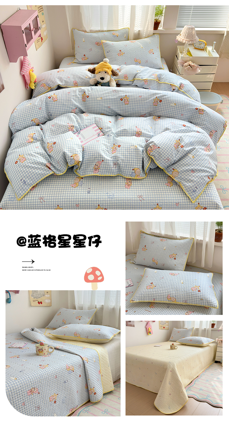 (总)妮可 2026新款贝壳边双面全棉床盖四件套,豹纹猫咪,星星喵喵,芝士星星仔,快乐小马,浪漫满屋,蓝格星星仔