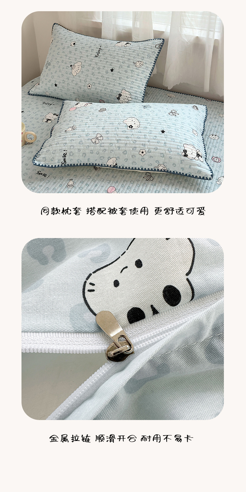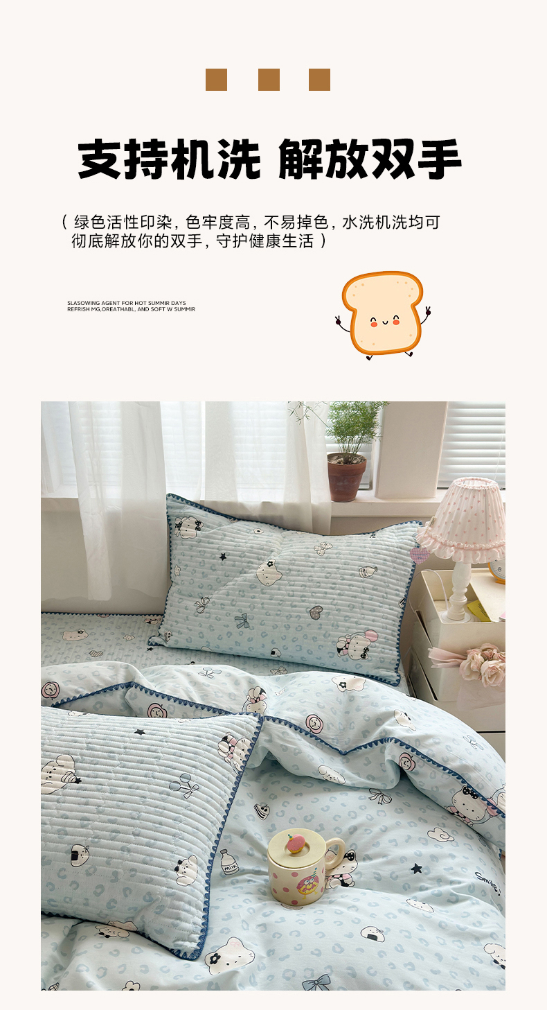 (总)妮可 2026新款全棉毛巾绣夹棉床盖四件套搭配大版数码印花枕套,快乐小象,企鹅宝宝,甜甜修狗,兔兔女孩,星仔紫,幸运马,组合图仅供参考不可下单