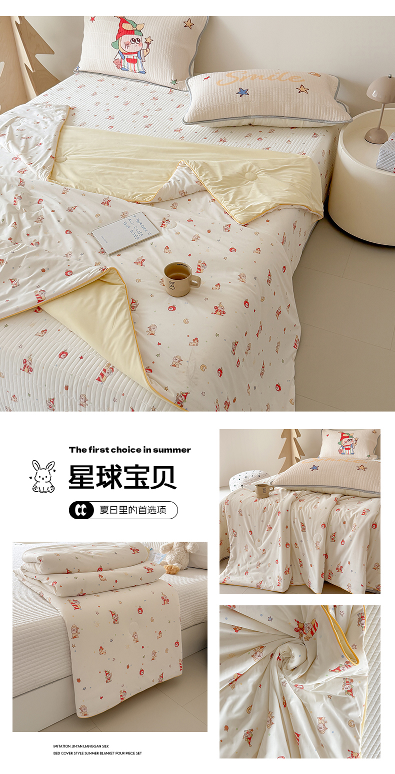 商品名称:吾欢心 2026夏季新款仿锦安凉感丝床盖款夏被四件套可可机洗凉感值大于0.2 冰雪萌宠