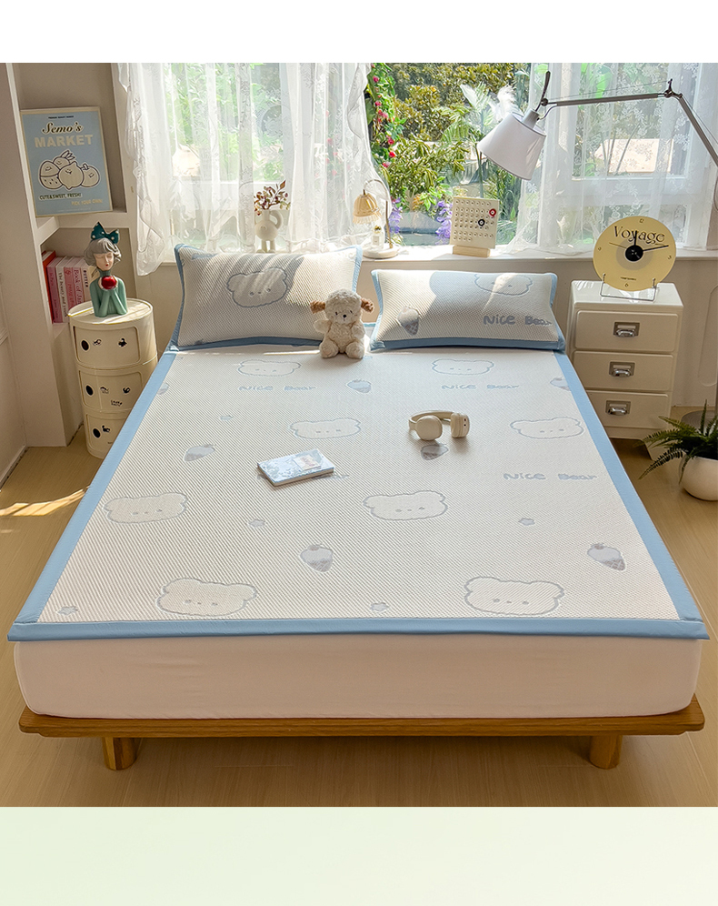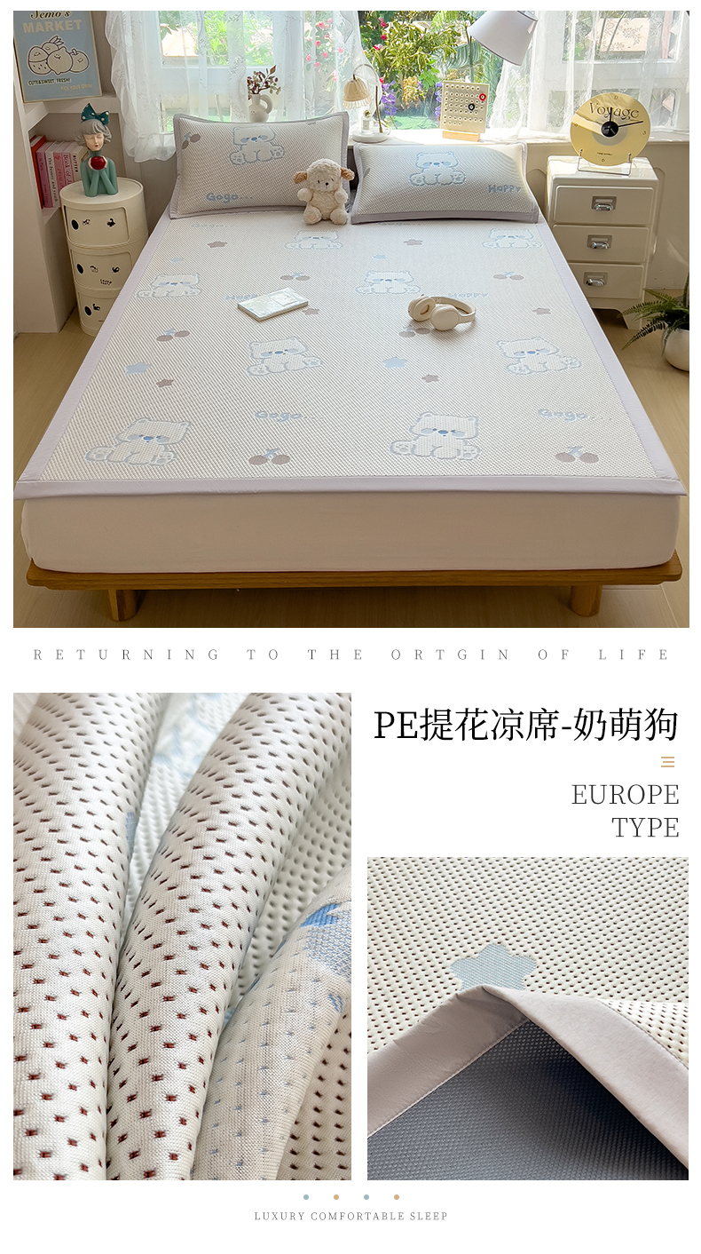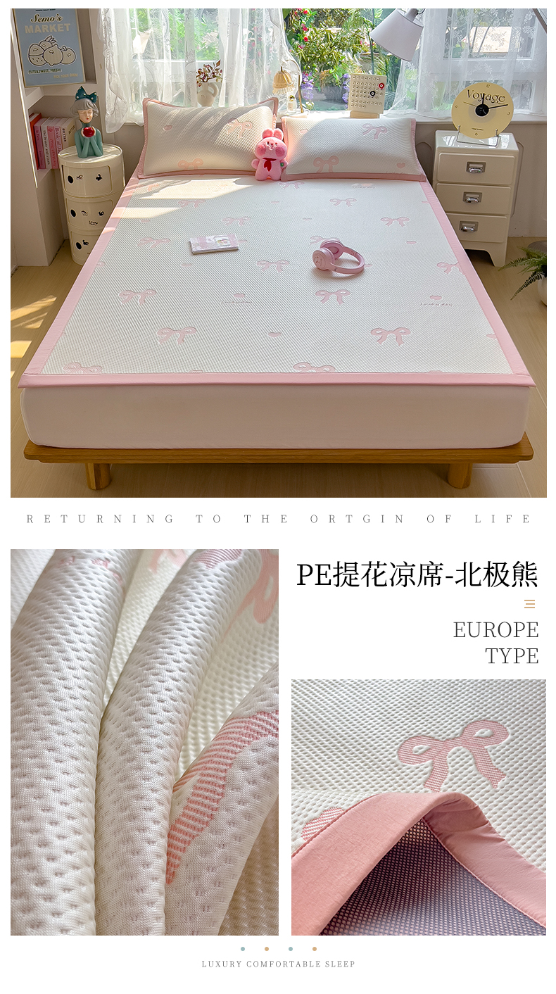 (总)雯豆家纺 2026新款PE中分子凉感凉席条席三件套加厚三明治款复合卡通提花凉席,PE提花凉席-领带熊,PE提花凉席-北极熊,PE提花凉席-蝴蝶结,PE提花凉席-腊肠狗,PE提花凉席-奶萌狗,PE提花凉席-甜心草莓,PE提花凉席-郁金香