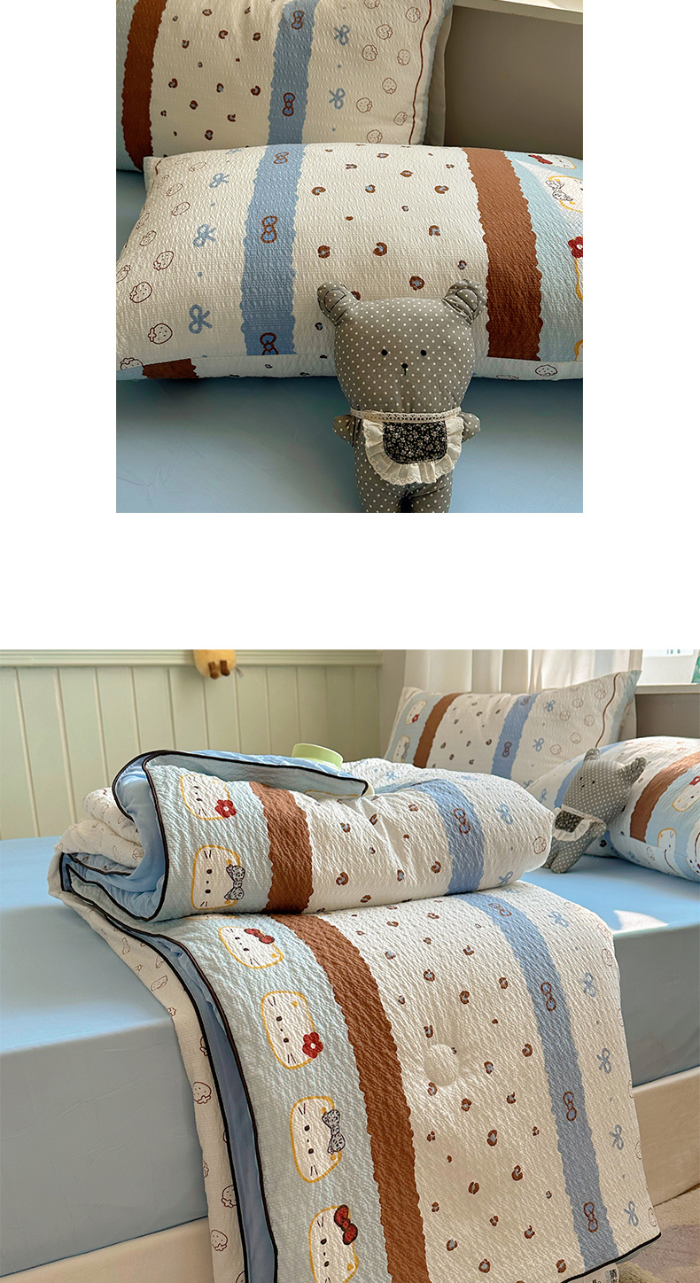 (总)贝扬思家纺 2025新款三丽鸥简约条纹夏被夏凉被空调被套件系列,奶油条kt粉粉,奶油条kt粉黄,奶油条kt黄黄,奶油条kt蓝蓝,奶油条kt紫紫