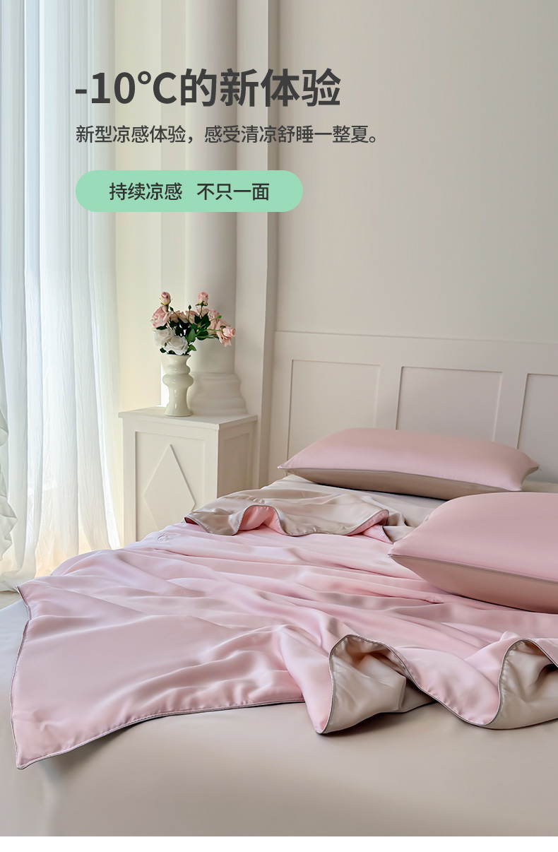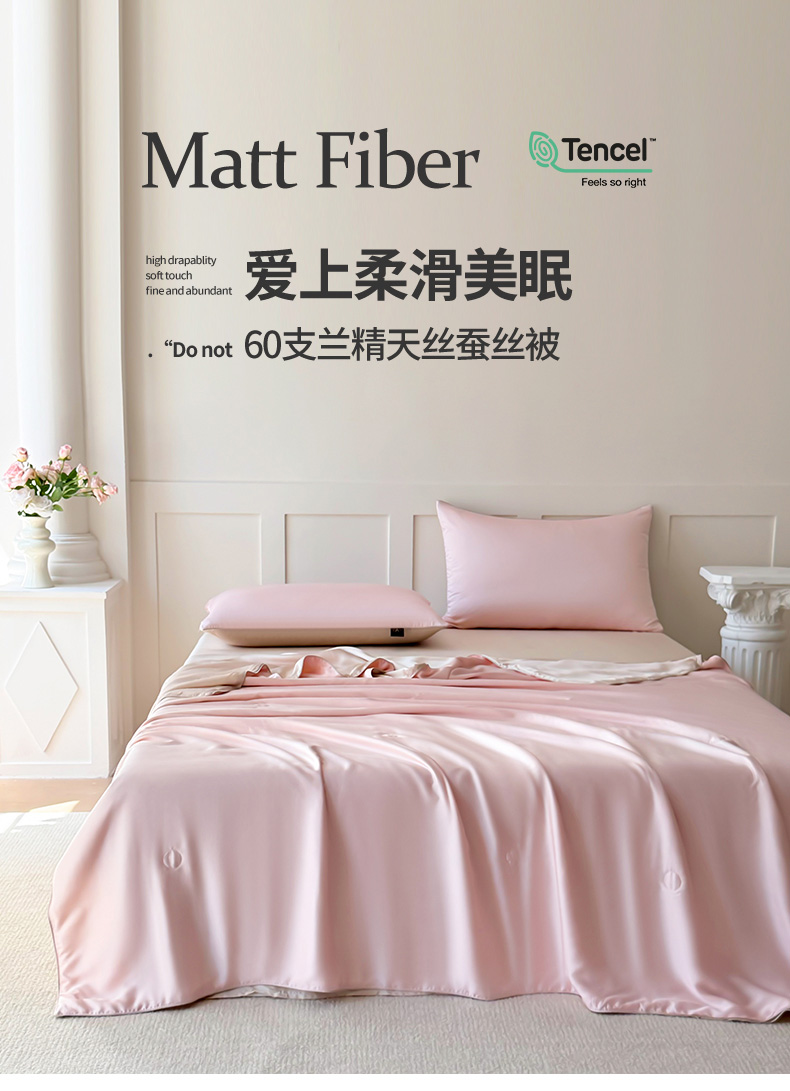 • 91家纺网 家纺一手货源 找家纺 鑫田家纺 2026新款60支兰精天丝蚕丝被夏凉被100%纯蚕丝夏被四件套床单床笠学生三件套 浅妮粉