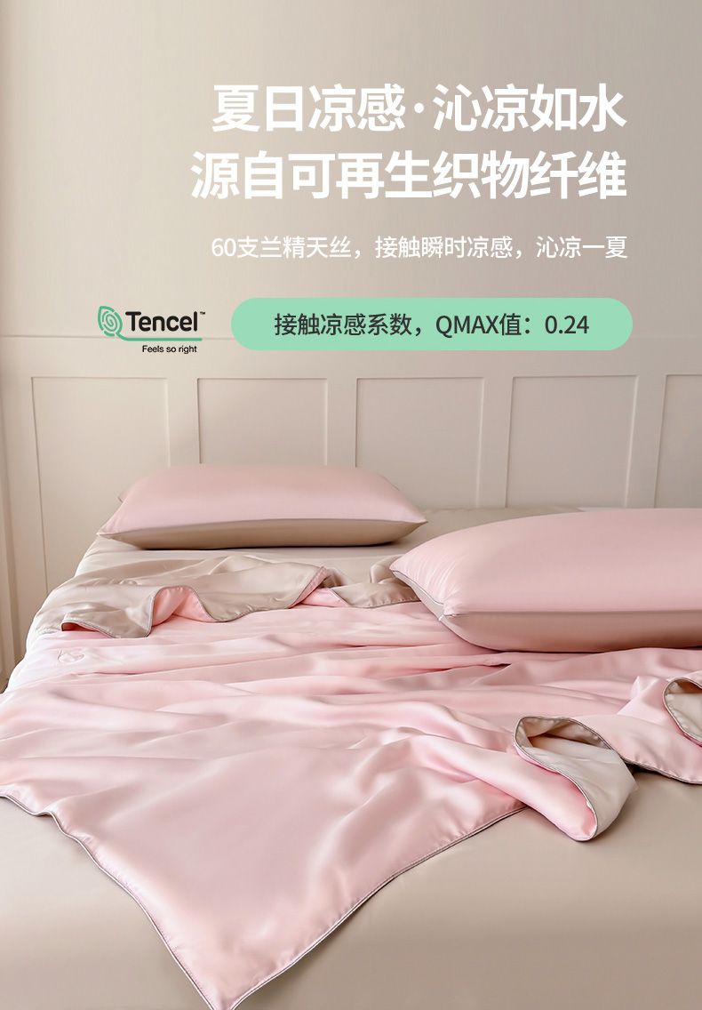 鑫田家纺 2026新款60支兰精天丝蚕丝被夏凉被100%纯蚕丝夏被四件套床单床笠学生三件套 浅妮粉