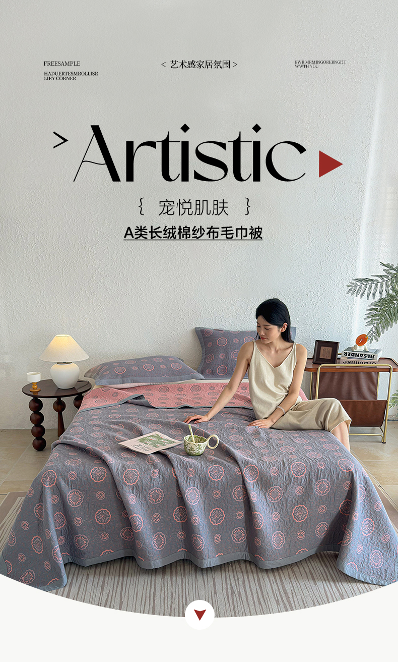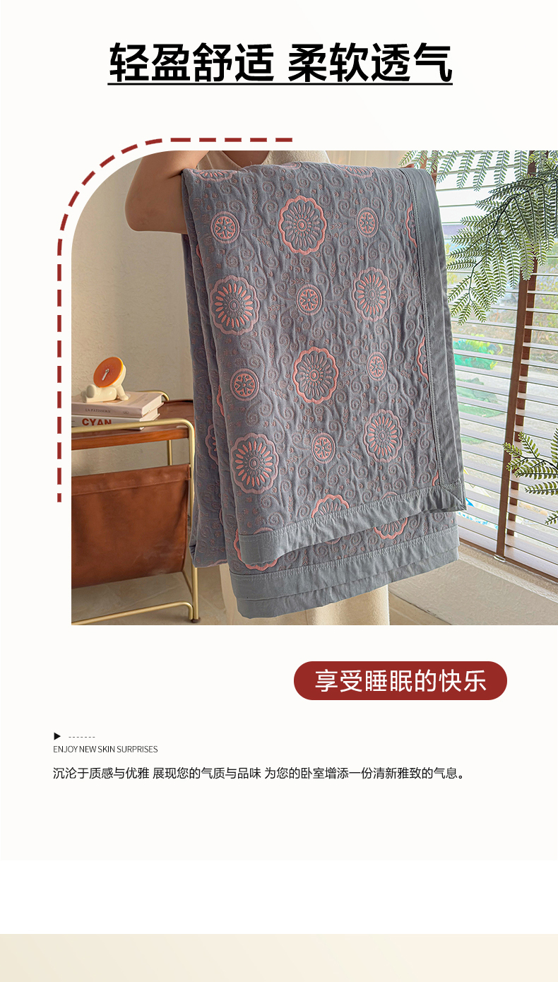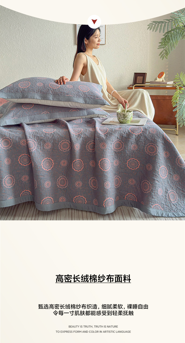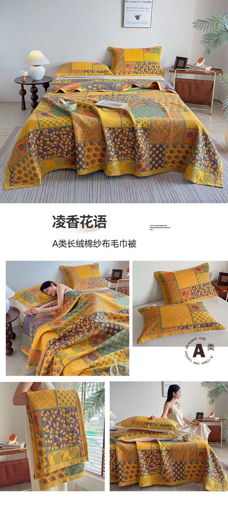 • 91家纺网 家纺一手货源 找家纺 棠薇家纺 2026新款纱布盖毯长绒棉纱布毛巾被夏被单双人棉纱盖毯毛巾毯夏季夏凉被空调被毯子可铺可盖床盖 罗曼蒂克