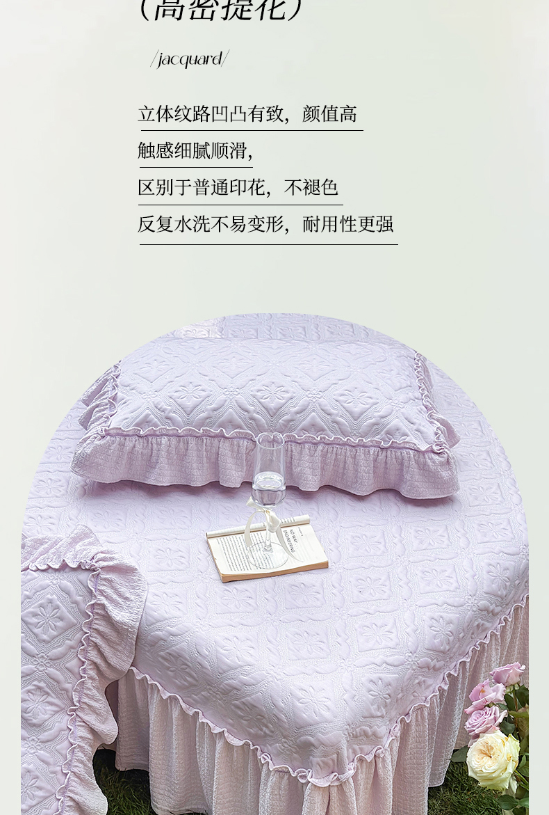 (总)乐朵家居 法派甜心 全棉40水洗棉 夹棉床盖四件套VS床单四件套(床单款控价 288 床盖款控价 338),玉,紫,兰,白,卡其