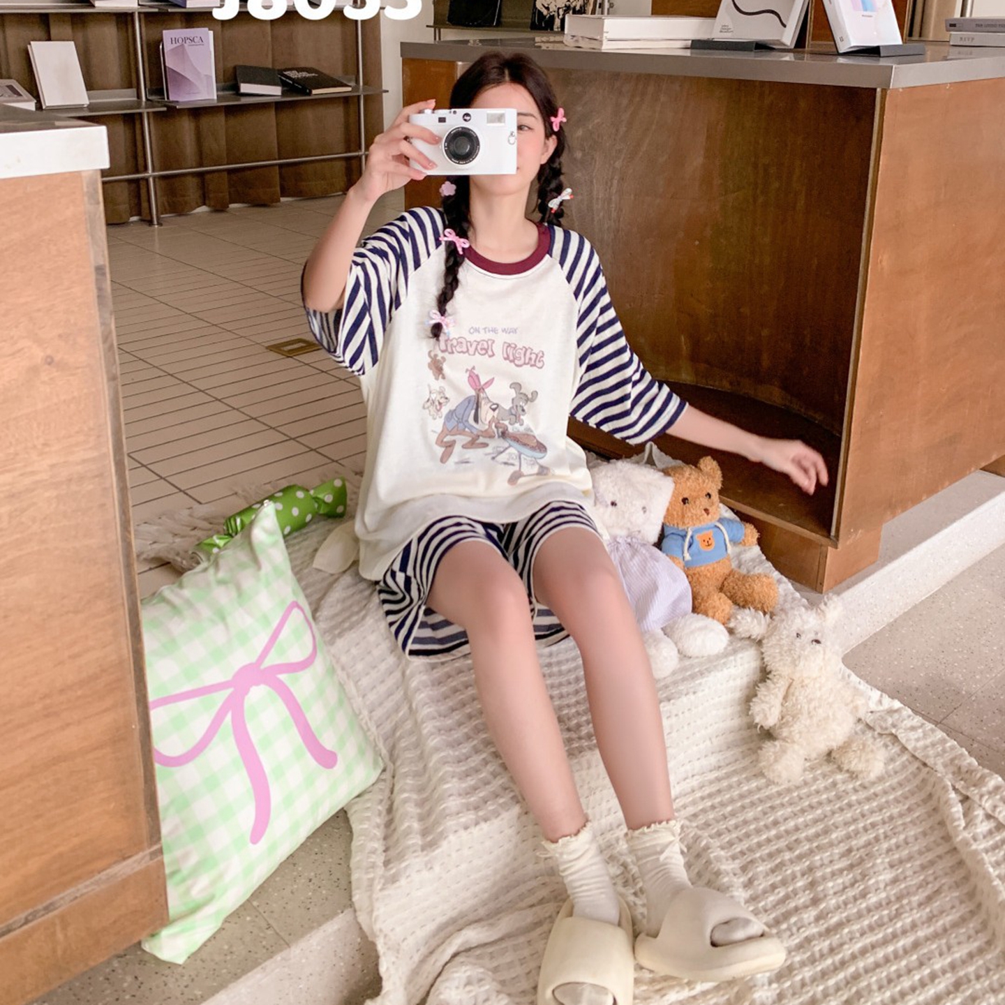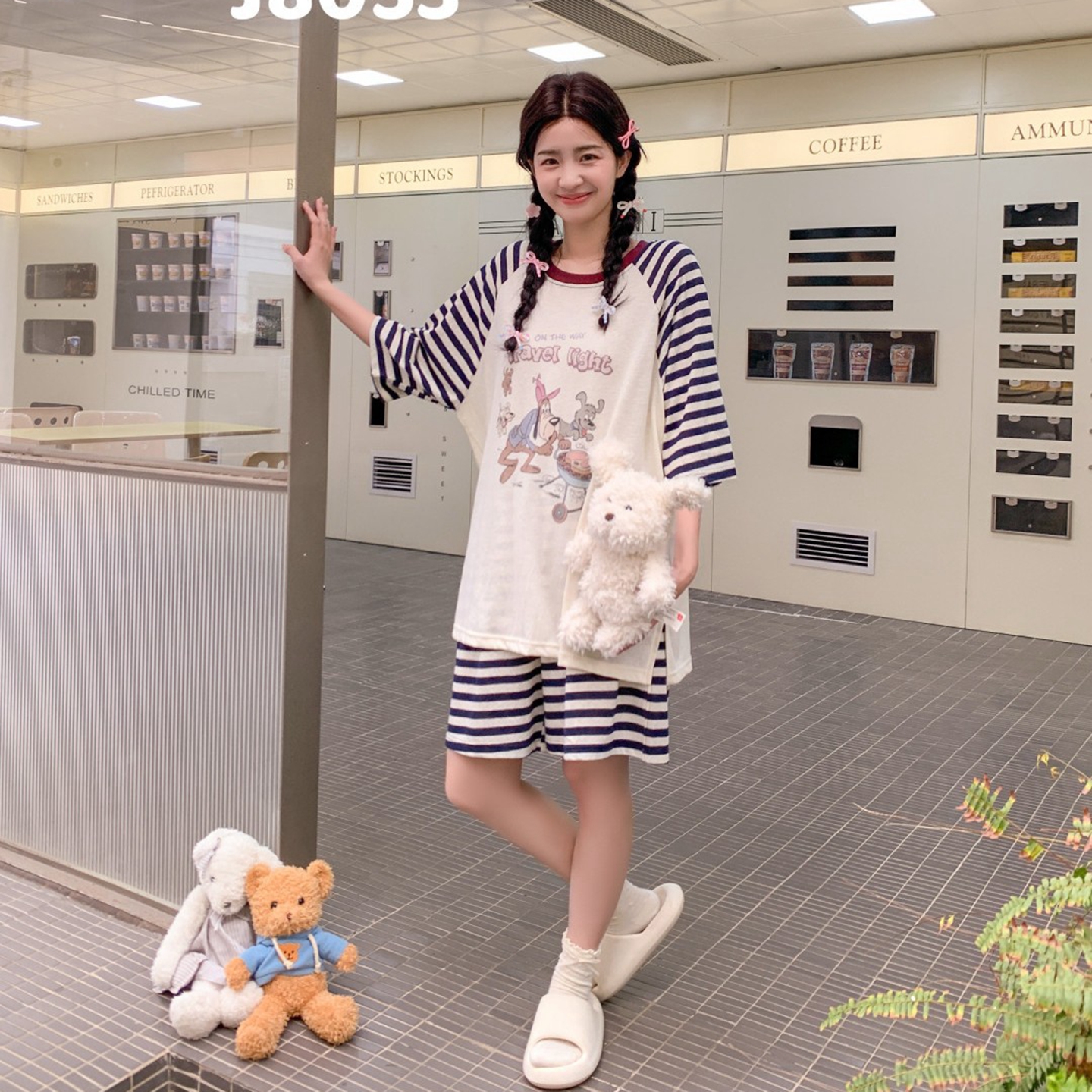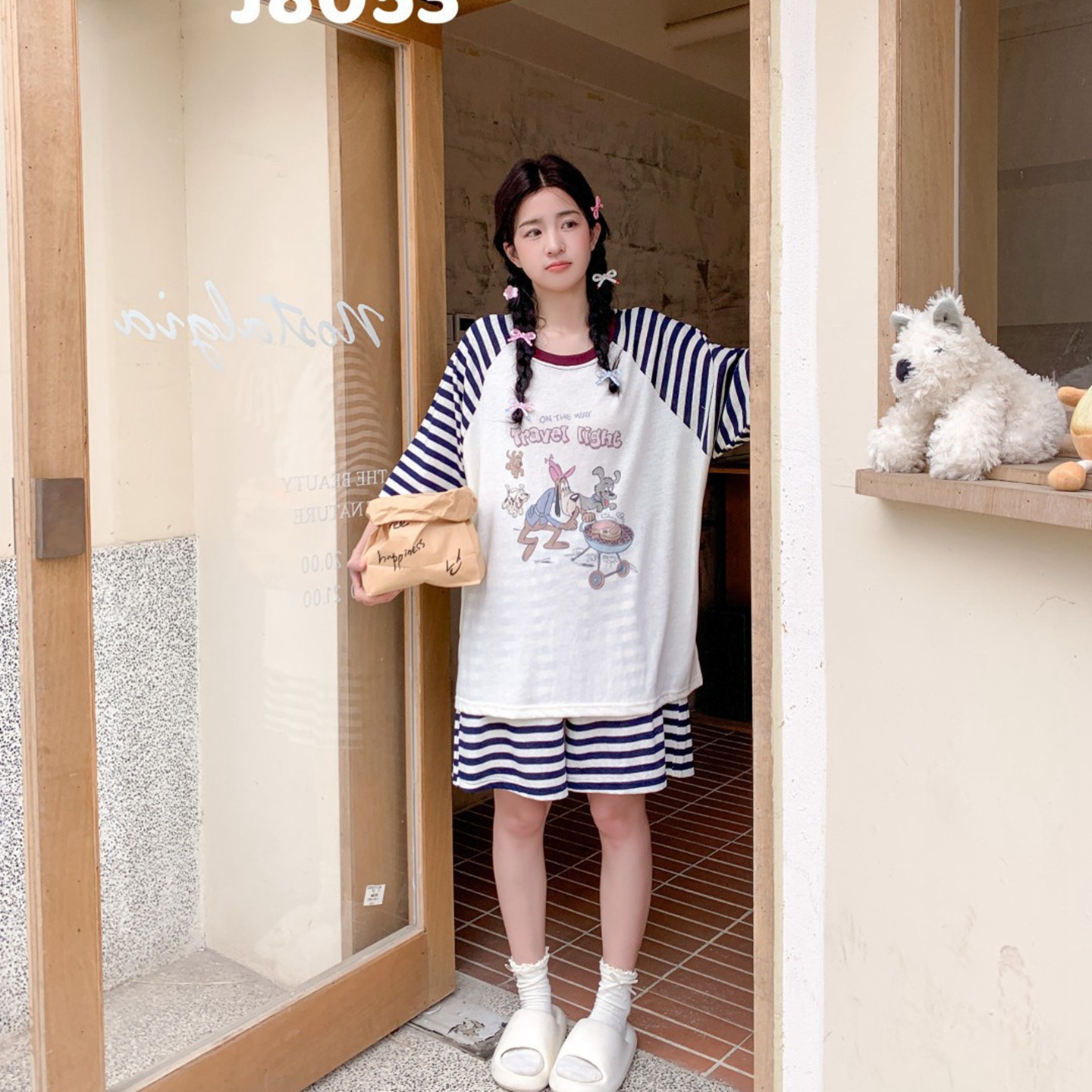 (总)妍景家居生活馆 2026新款针织棉条纹开衫短短家居服,针织棉条纹开衫短短