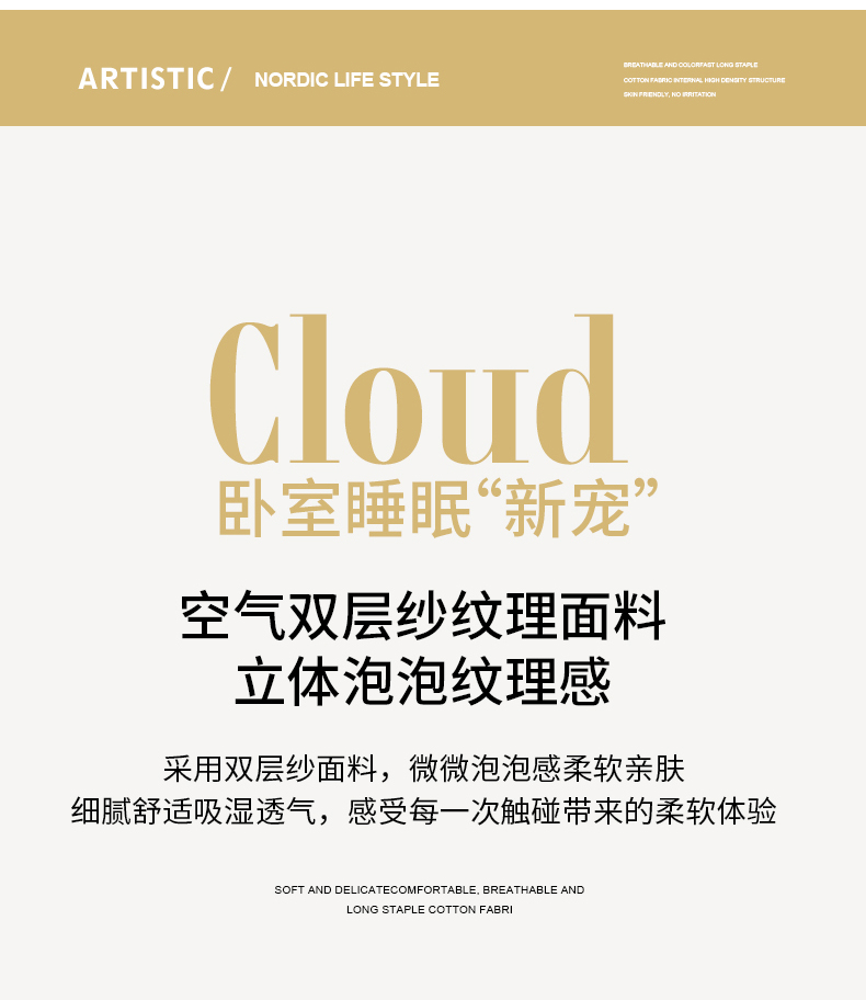 莱米家纺 2026新款云感泡泡纱双层纱床盖四件套 卡其波点