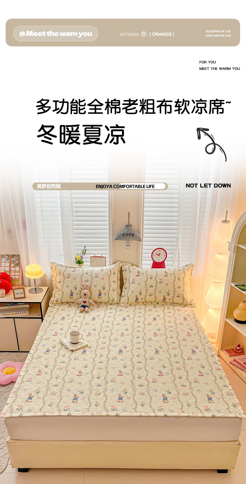 当前位置: 91家纺网 > 商品网购 > 床上用品 > 凉席 > 忆生活家纺 2026新款A类全棉老粗布软凉席夹棉床盖可机洗 藤蔓兔
