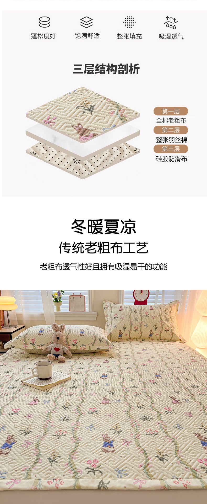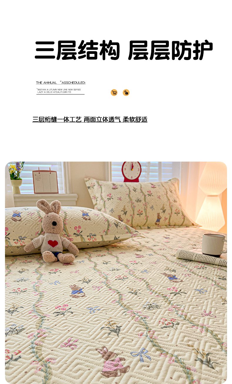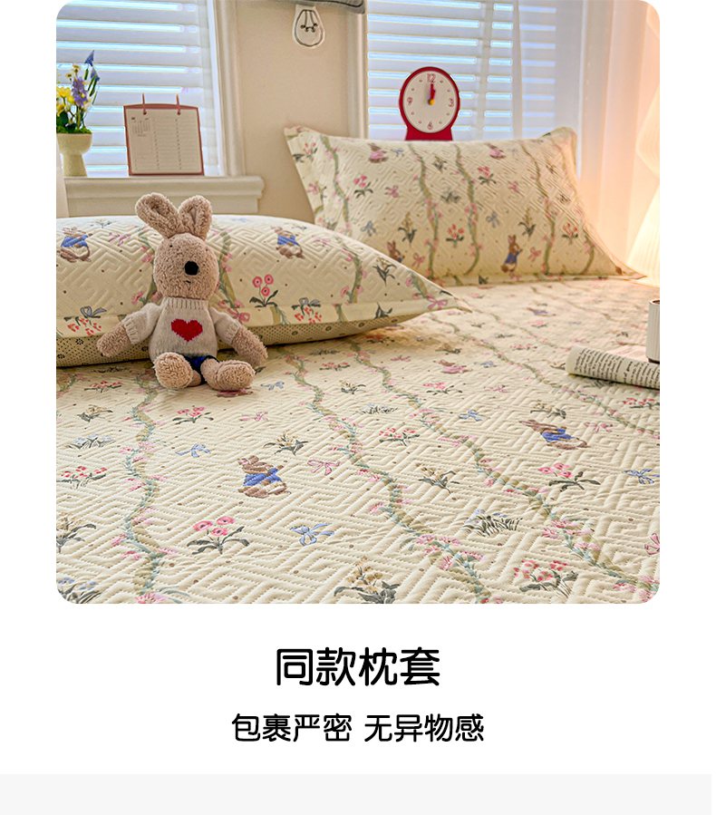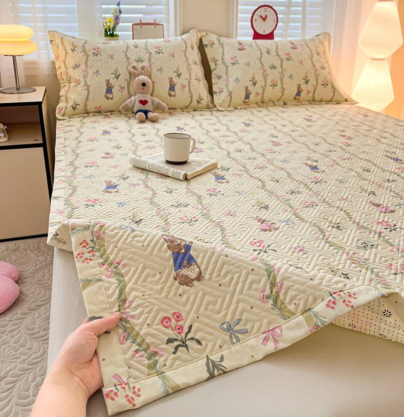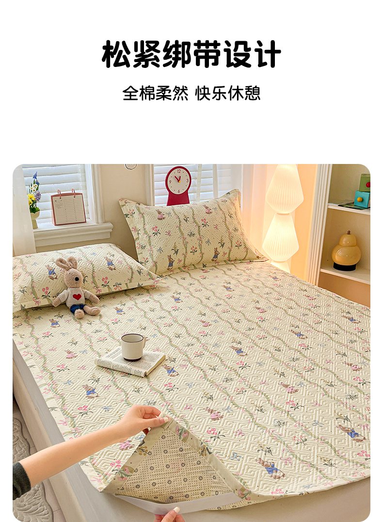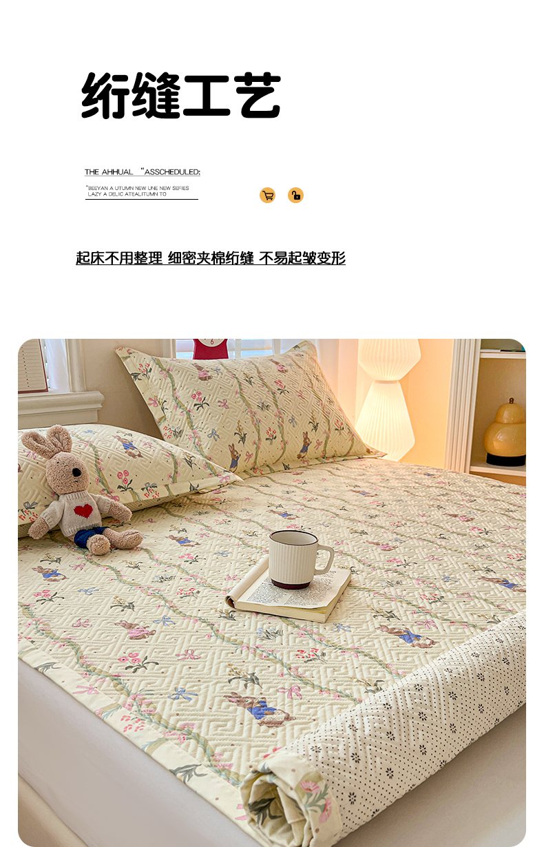 忆生活家纺 2026新款A类全棉老粗布软凉席夹棉床盖可机洗 藤蔓兔
