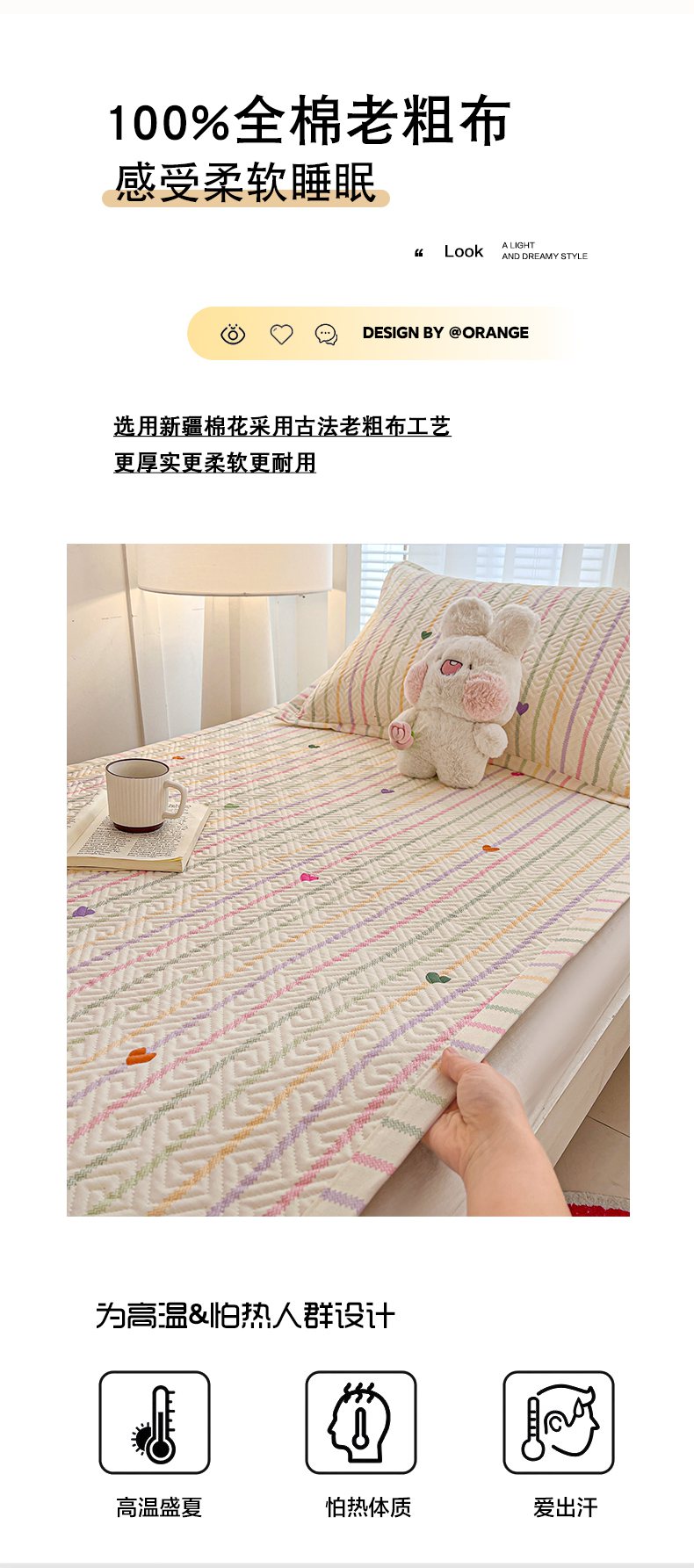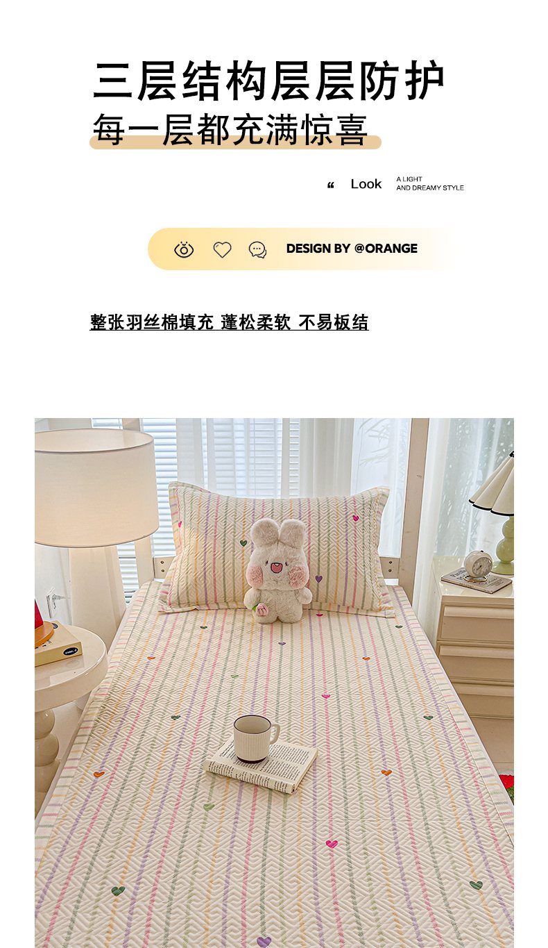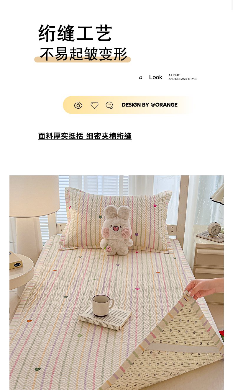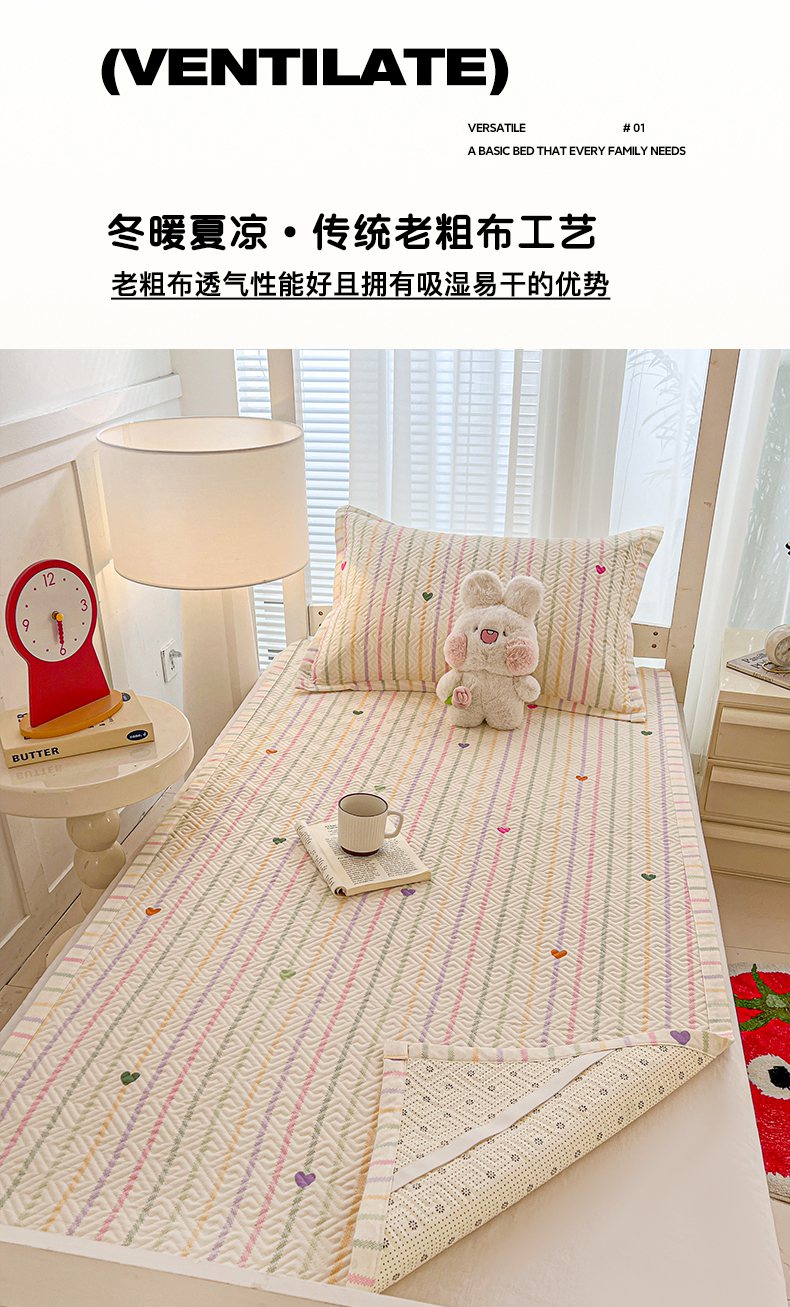 • 91家纺网 家纺一手货源 找家纺 忆生活家纺 2026新款学生床全棉老粗布软凉席夹棉床盖 小爱心