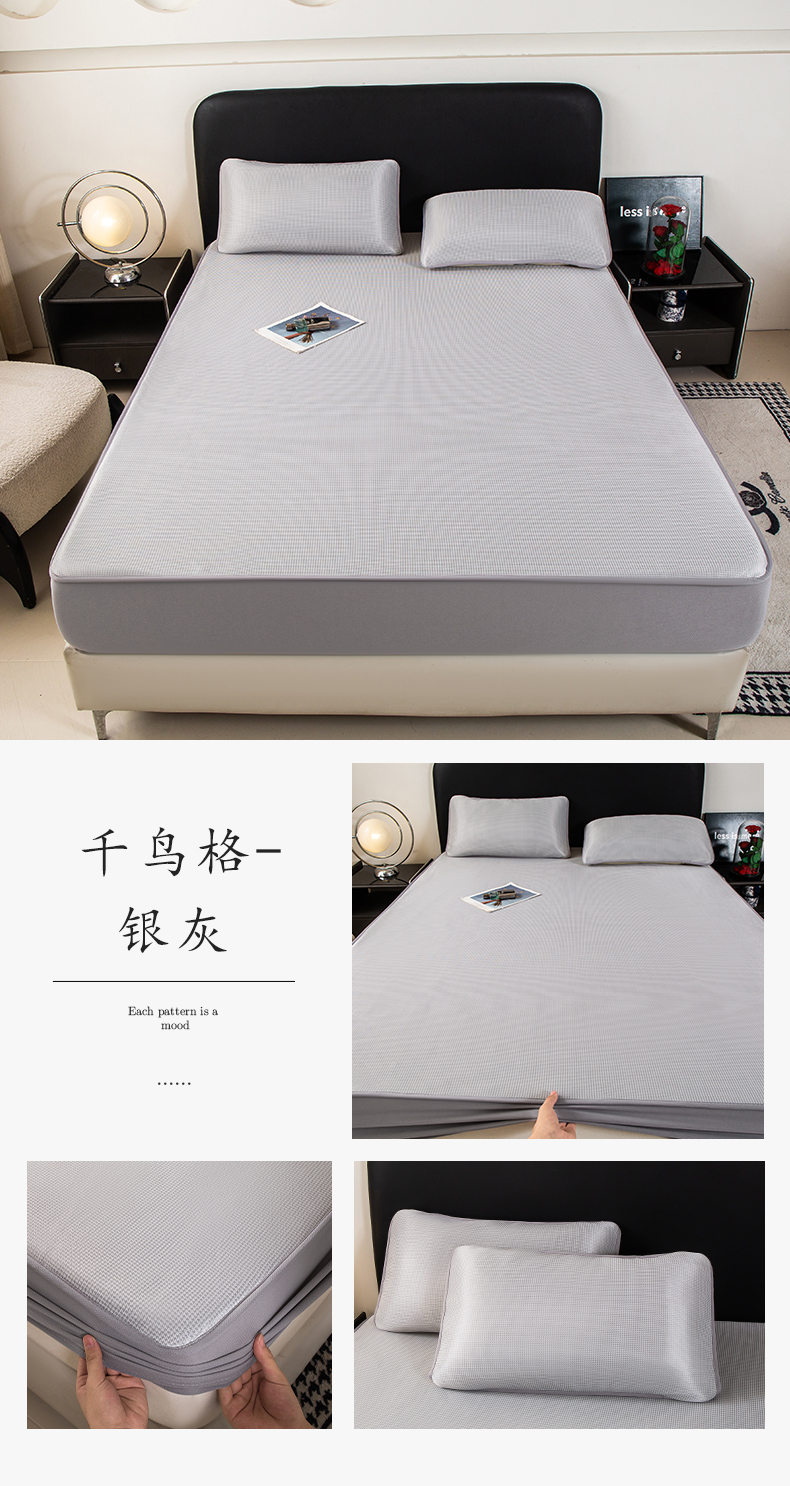 (总)春寻2024直播爆款高克重提花千鸟格床笠冰丝凉席三件套夏天空调软席子可水洗,千鸟格-粉豆沙,千鸟格-咖色,千鸟格-浅灰,千鸟格-浅绿,千鸟格-深灰,千鸟格-天蓝,千鸟格-烟紫