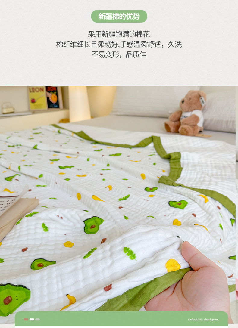 慕婷家纺 2026新款婴儿纱布浴巾浴巾全棉六层纱布泡泡纱布毛巾被 牛油果