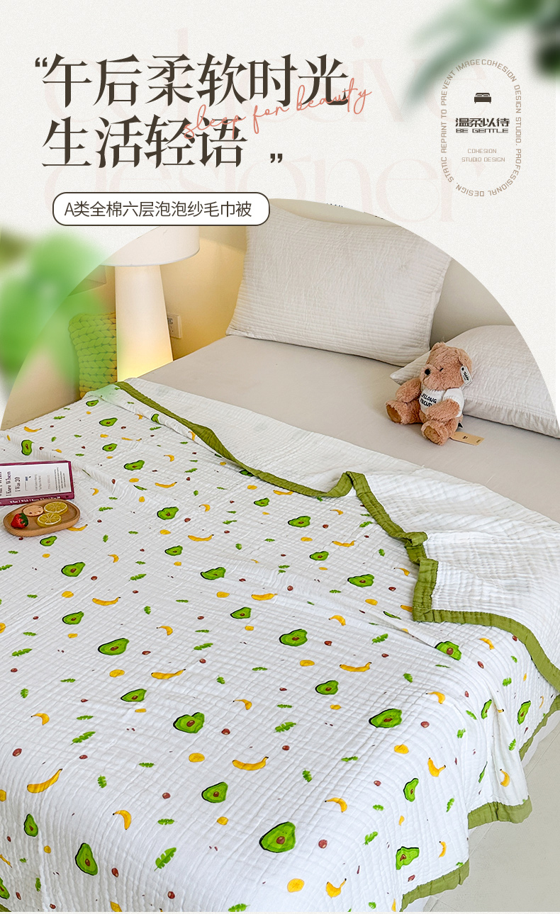 商品名称:慕婷家纺 2026新款婴儿纱布浴巾浴巾全棉六层纱布泡泡纱布毛巾被 牛油果