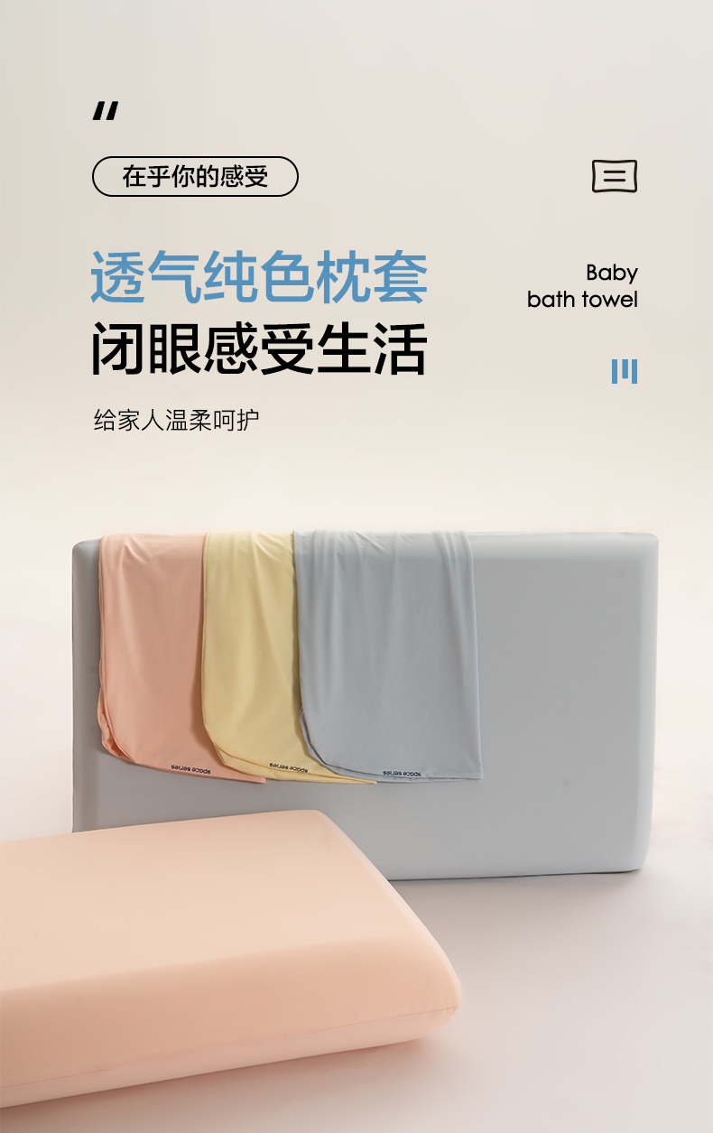 (总)唯爱品 2026新款锦氨纯色凉感枕套2只装,组合图,灰蓝色,浅黄色,玉粉色