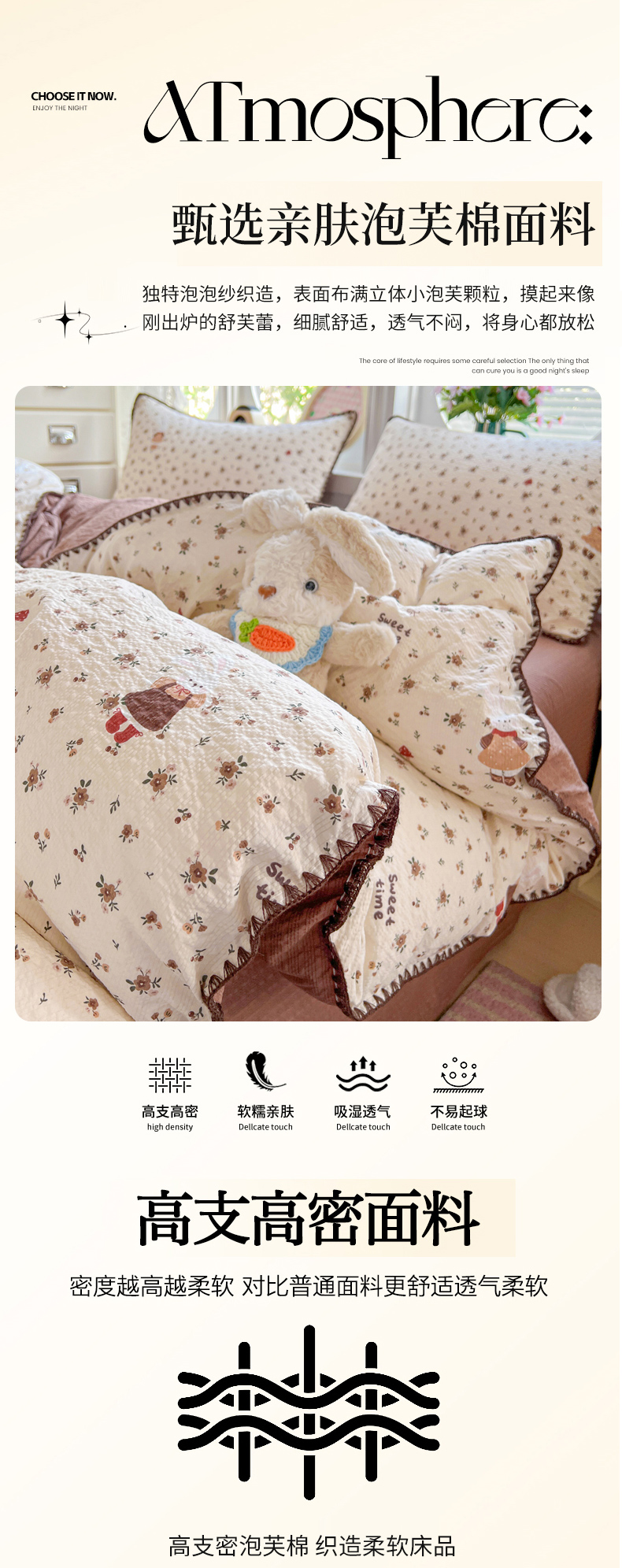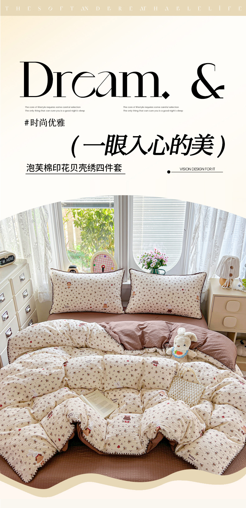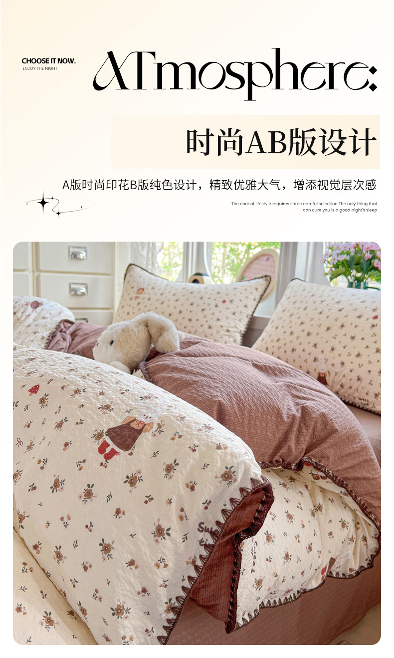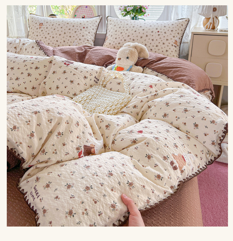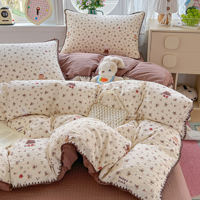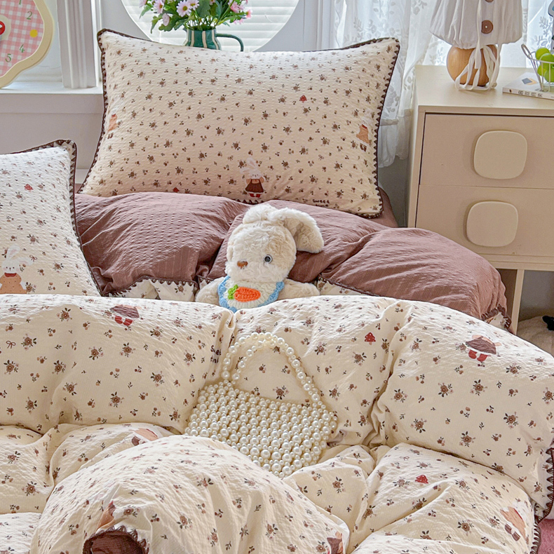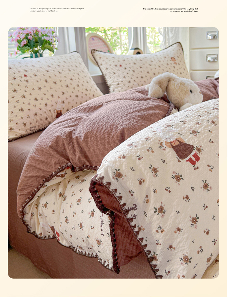 当前位置: 91家纺网 > 商品网购 > 床品套件 > 四件套 > 其它四件套 > 恒尚居 2026新款泡芙纱四件套贝壳绣边床盖套件单被套床单床笠 【花雨小兔】贝壳边