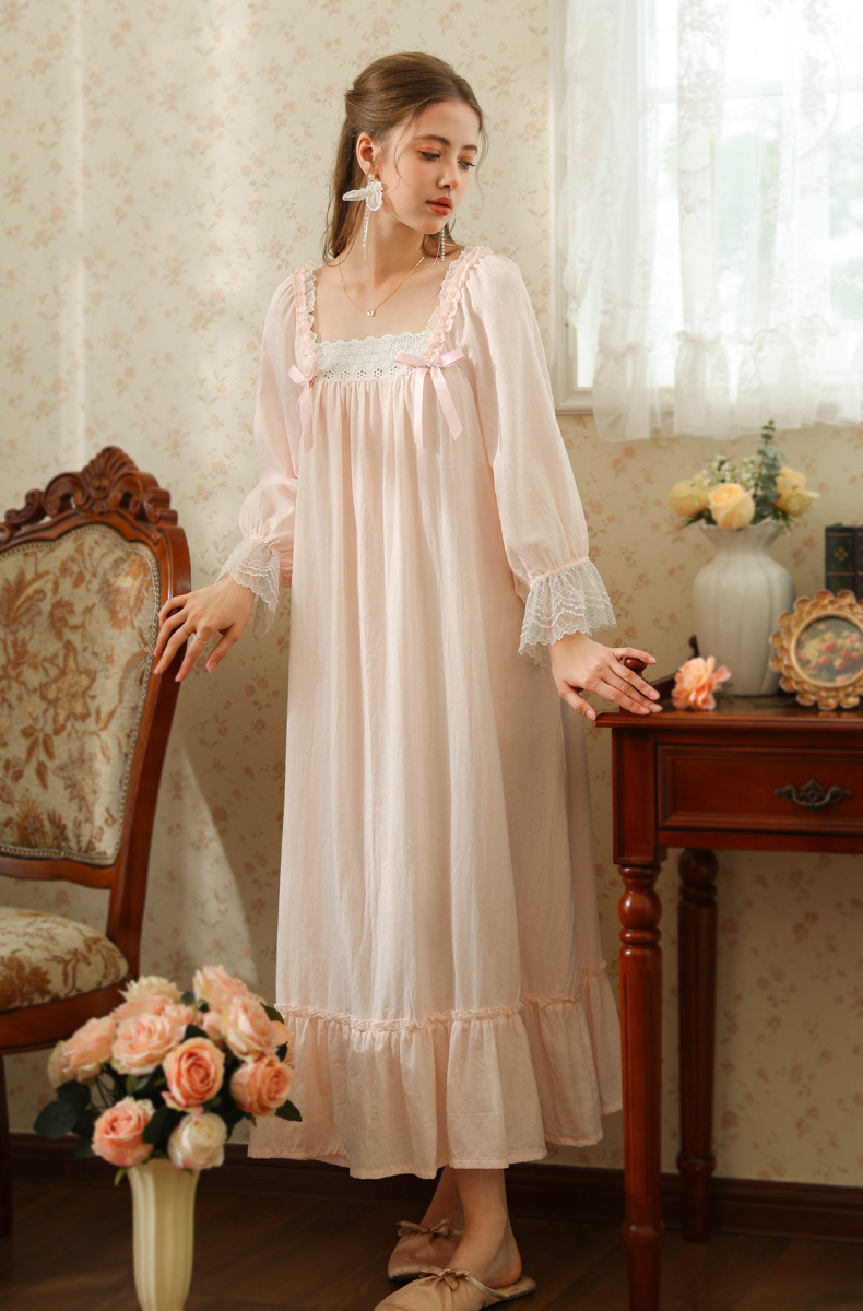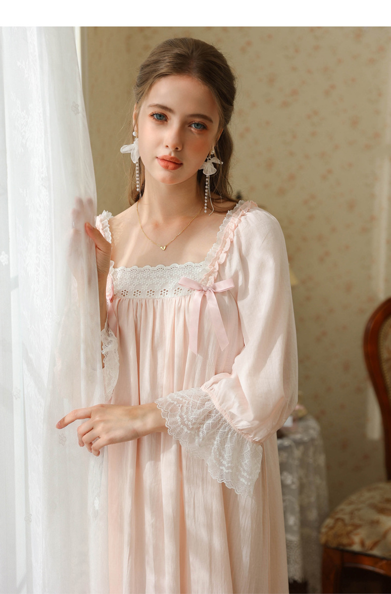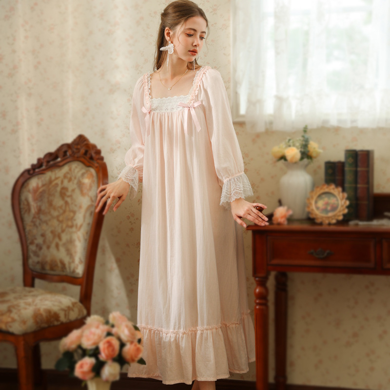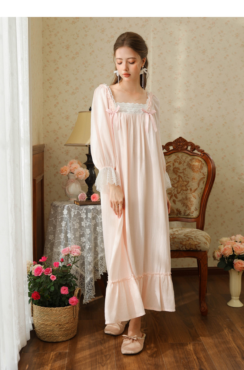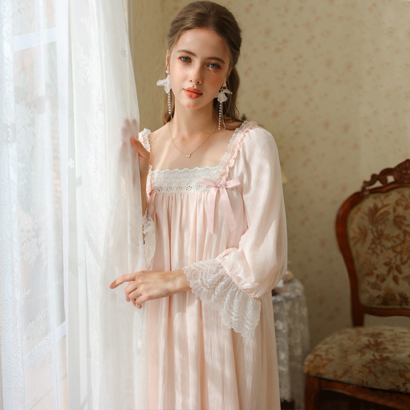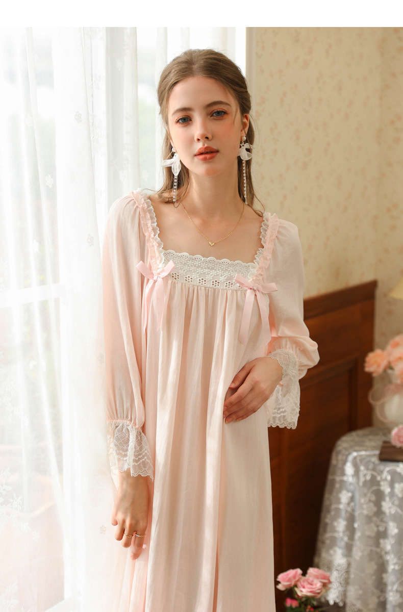 (总) 洛兰沙家居馆 2026新款春秋睡裙法式公主长袖甜美睡衣女长裙宽松宫廷风批发跨境新款家居