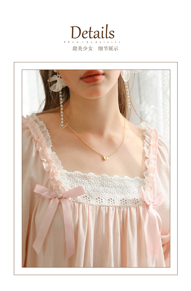 (总)洛兰沙家居馆 2026新款睡裙少女短袖法式复古公主风睡衣裙夏天新款长款柔美蕾丝宽松长裙,花色1,花色2,花色3,花色4