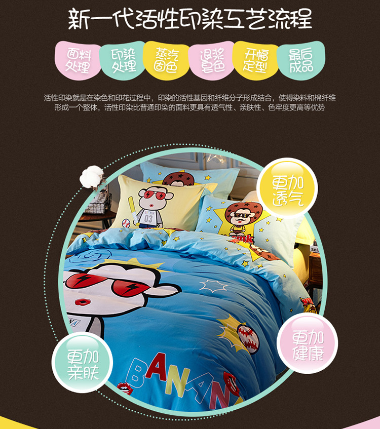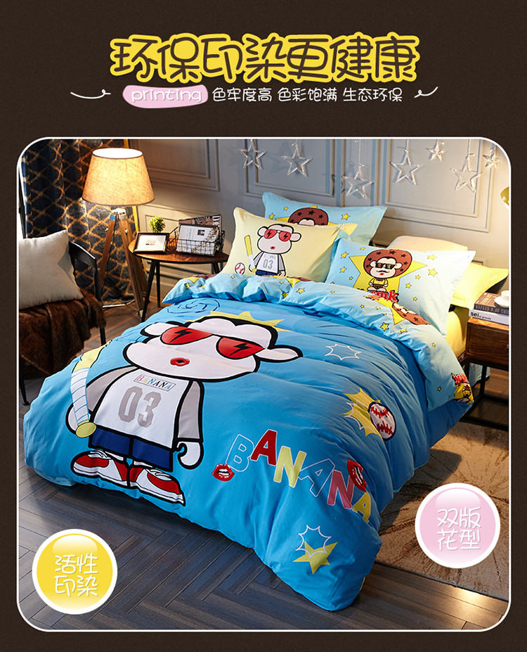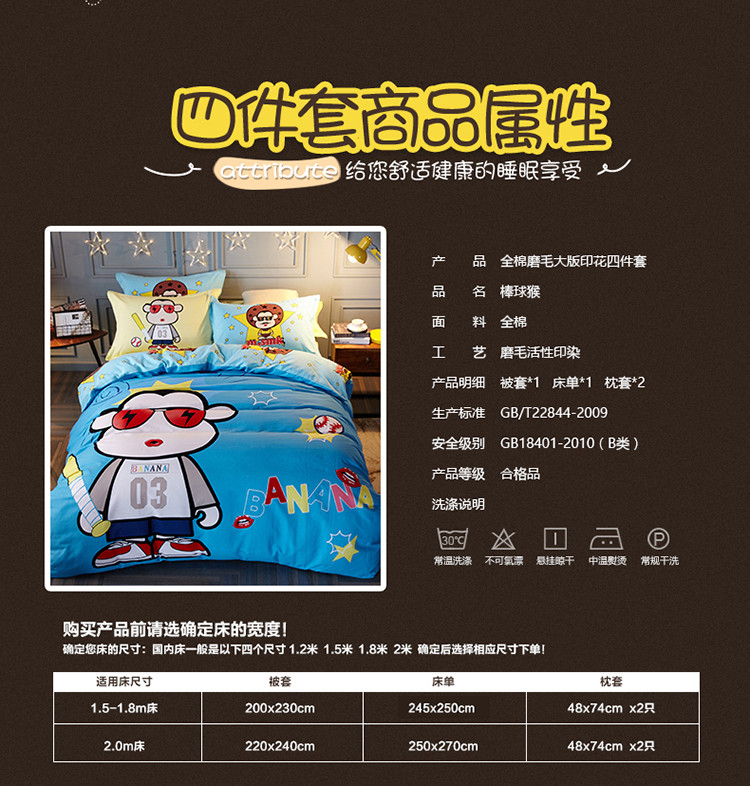 商品名称:芃成家纺 2017平网全棉四件套 棒球猴