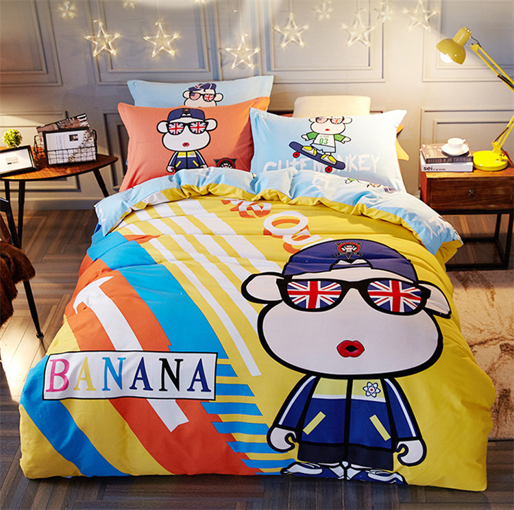 芃成家纺 2017平网全棉四件套 嘻哈猴