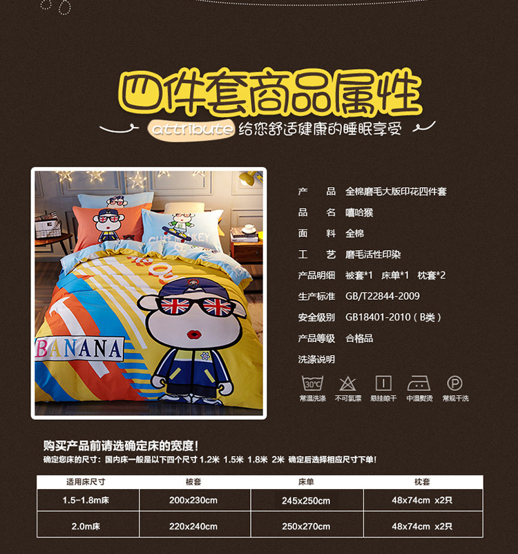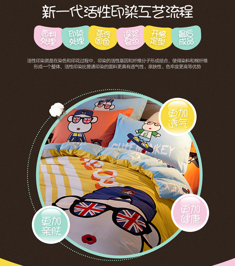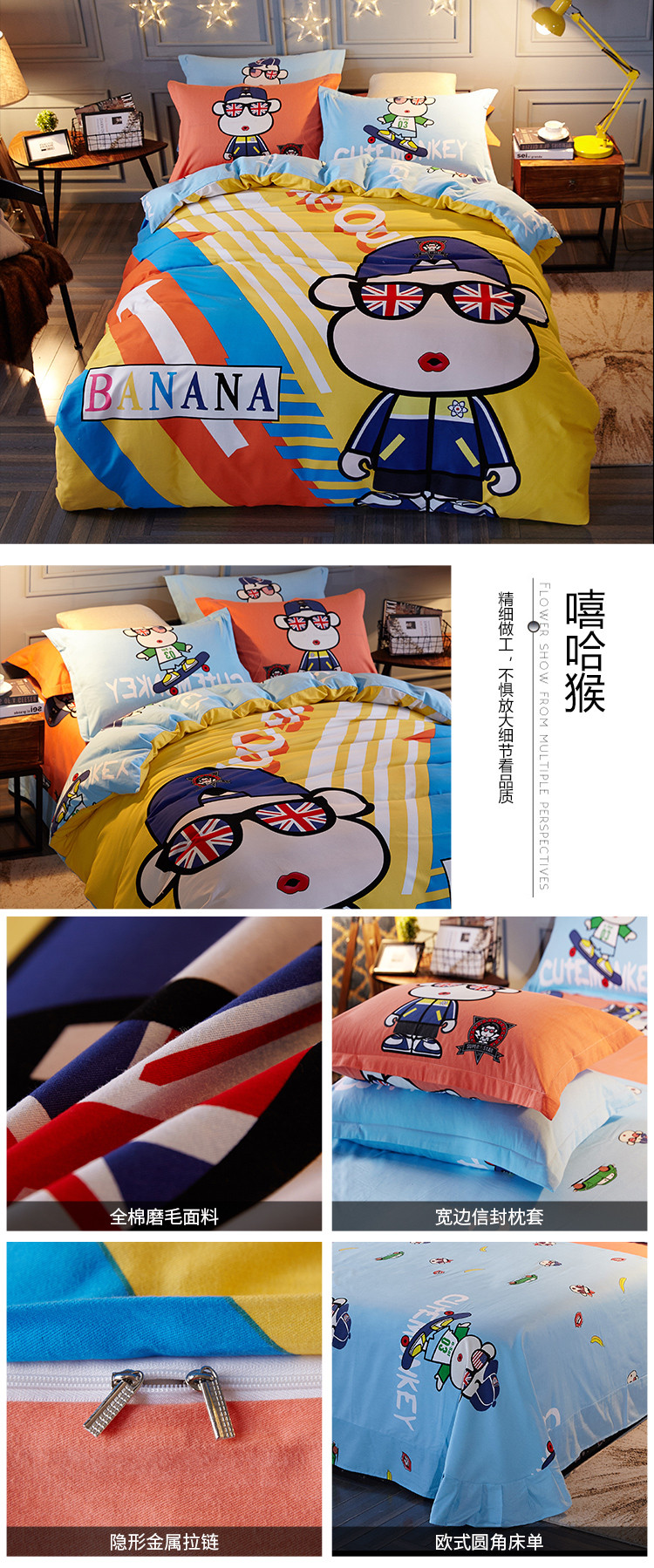 商品名称:芃成家纺 2017平网全棉四件套 嘻哈猴