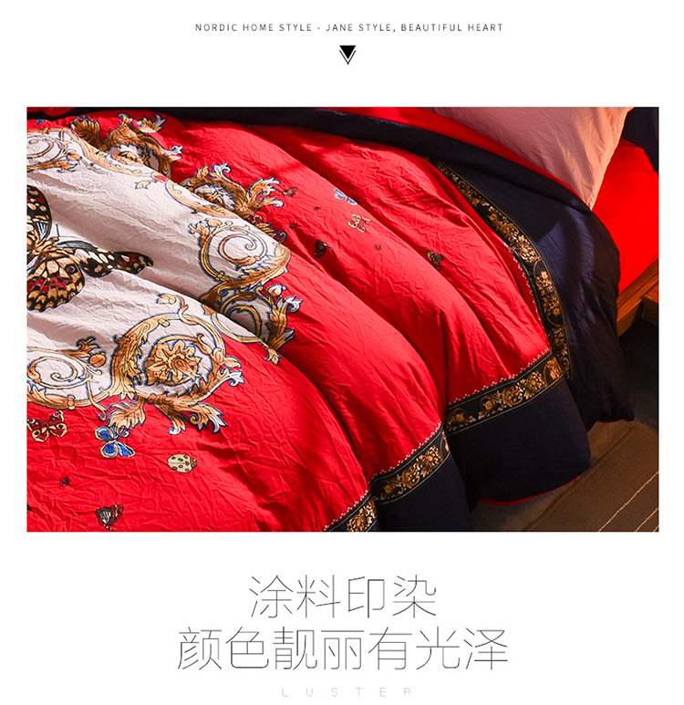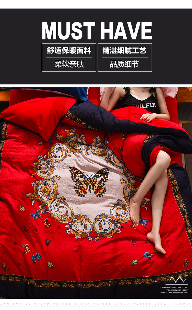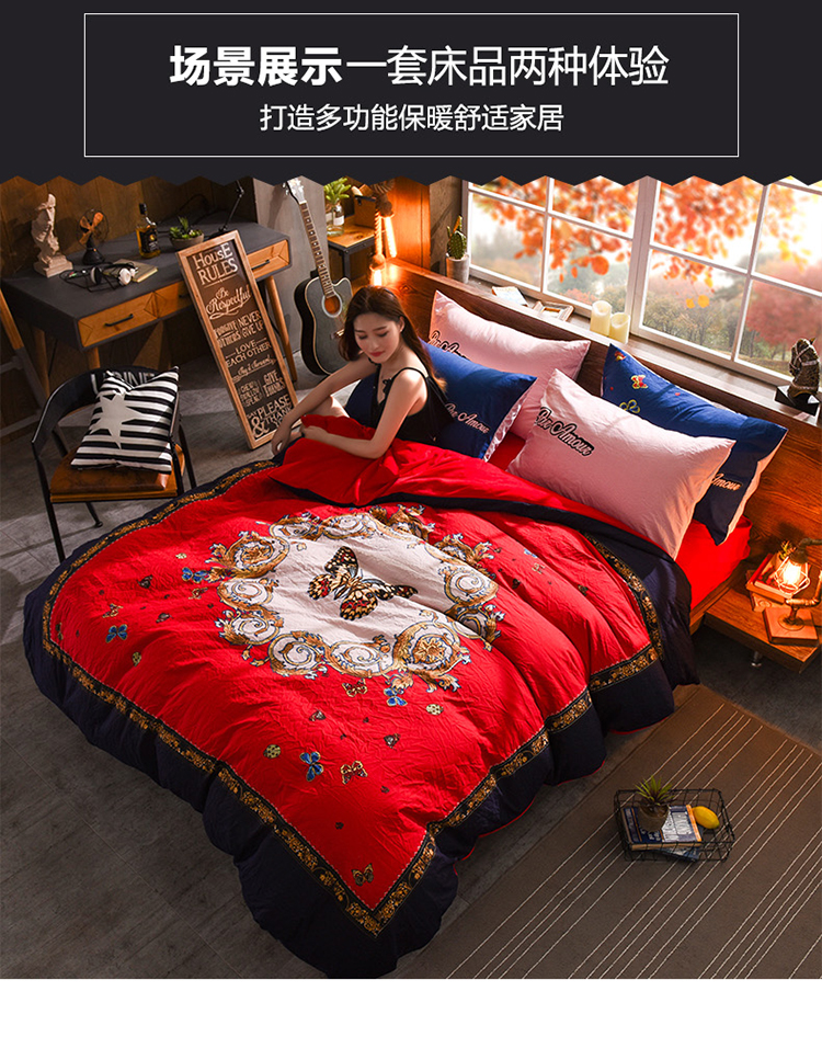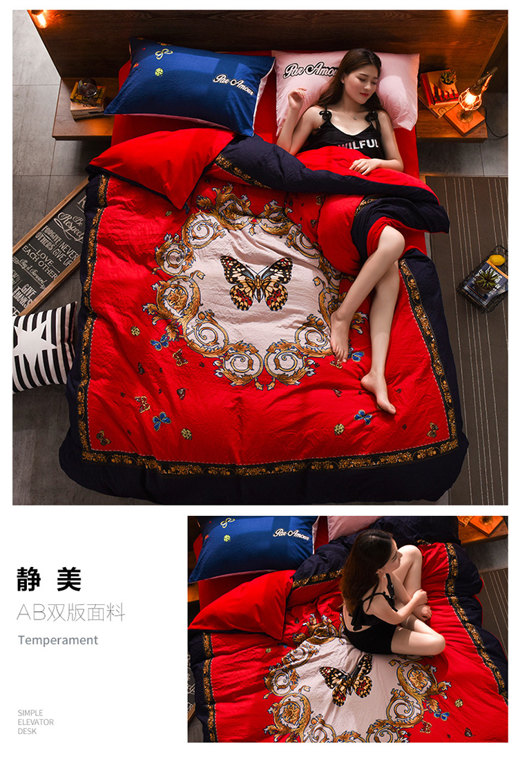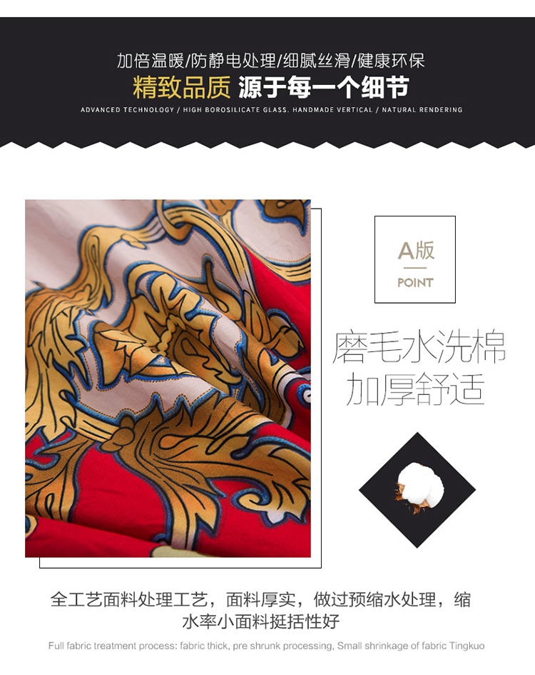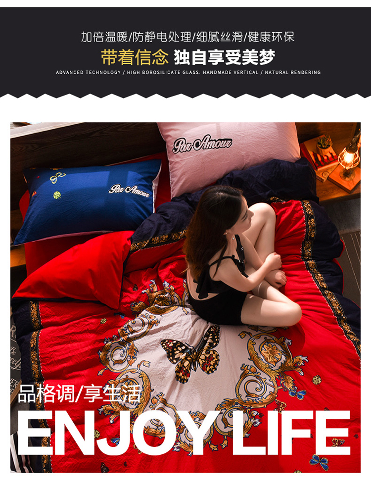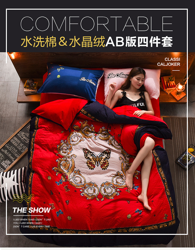 芃成家纺 磨毛水洗棉平网印花拼水晶绒四件套静美